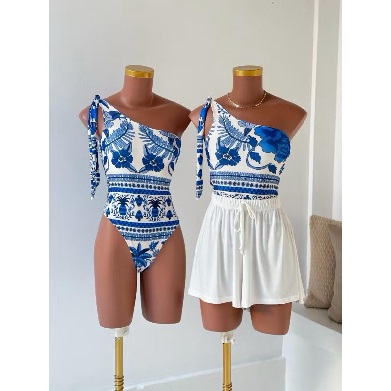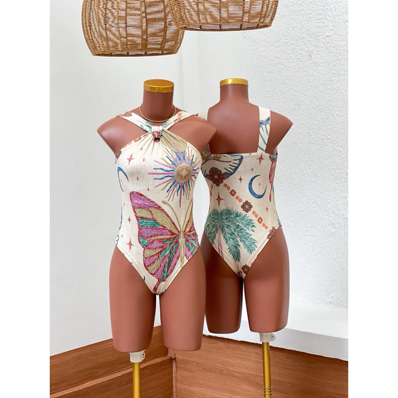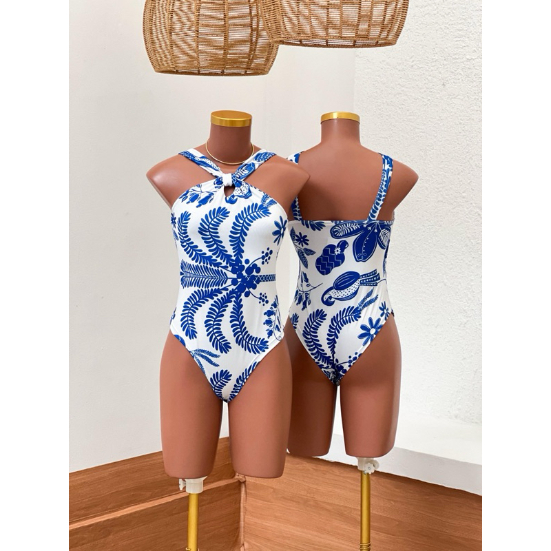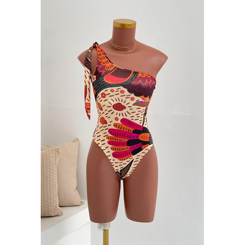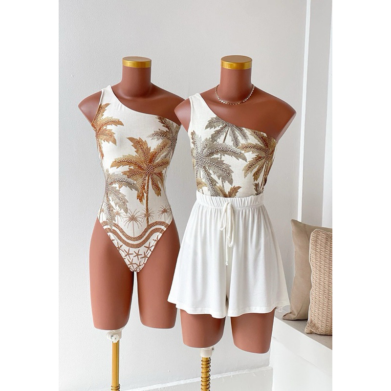 Body estampado um ombro só moda praia blogueira ombro único Bory Bori