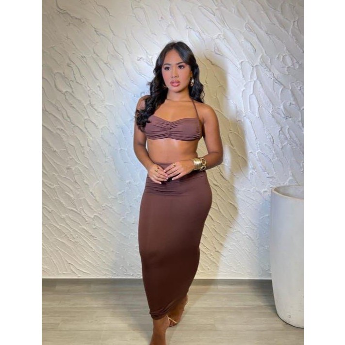 Conjunto Cropped e Saia MIDI Feminina Moda Gringa Carol