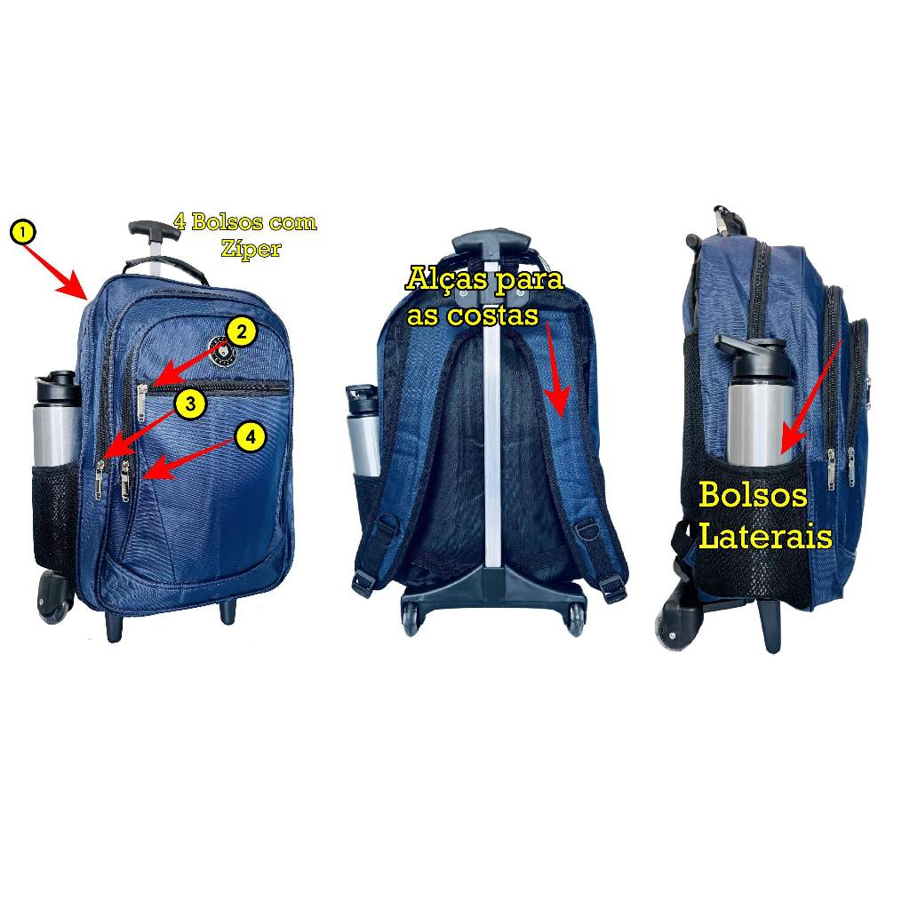 Mochila Juvenil Masculina/Feminina De Rodinhas Escolar Reforçada