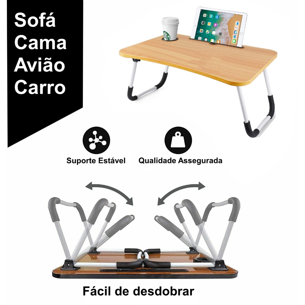 Mesa Portátil Dobrável para Notebook Home Office Mesinha Madeira