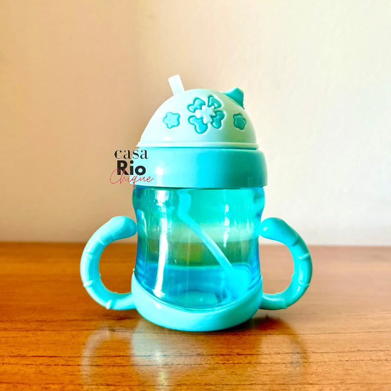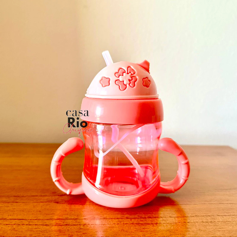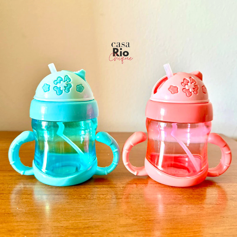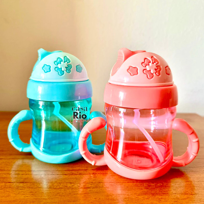 Garrafa de Água Infantil 220ml Copo de Treinamento para Bebê com Alça e Bico de Silicone Garrafinha de Plástico