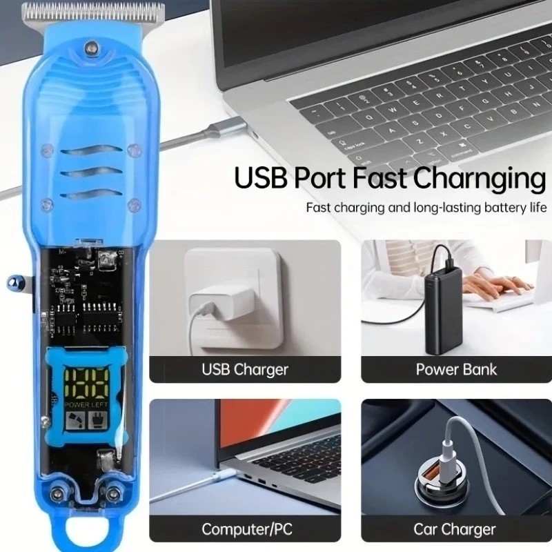 Cortador de Cabelo Profissional Sem Fio com Display LCD Inteligente e Barbeador para Homens