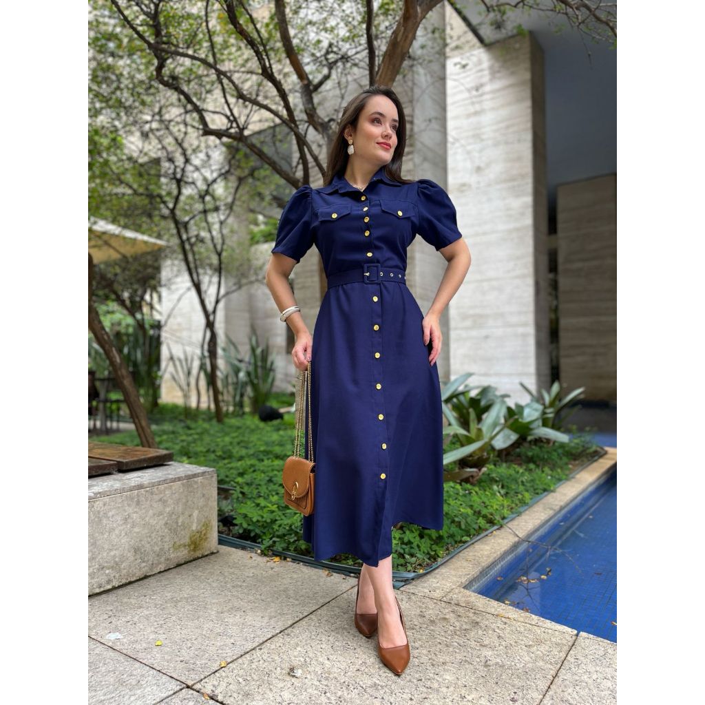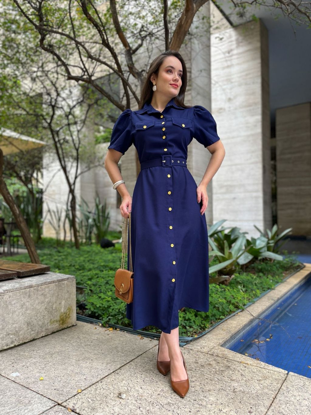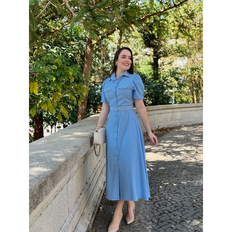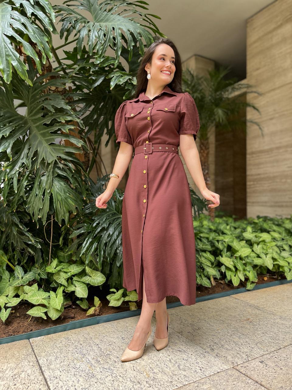 Vestido chemise Max Midi Liso Sensorial com botões moda feminina