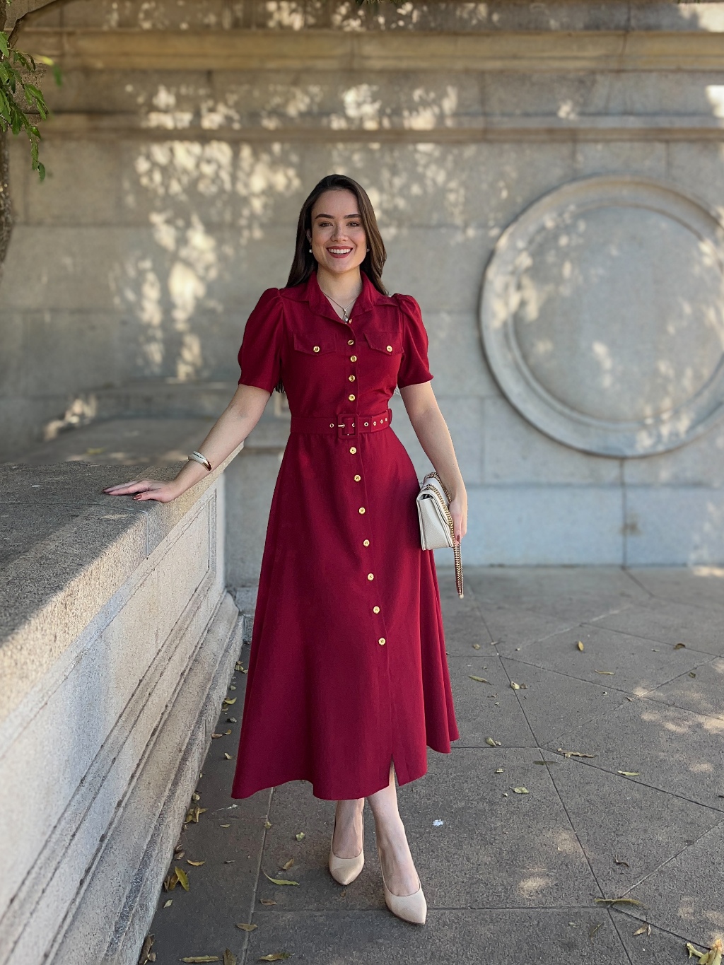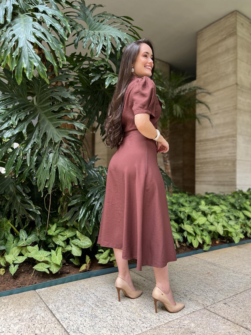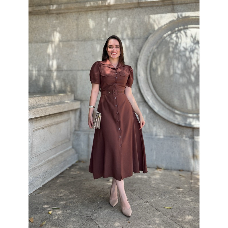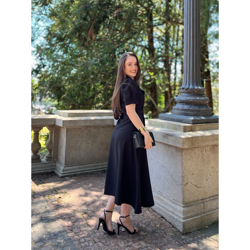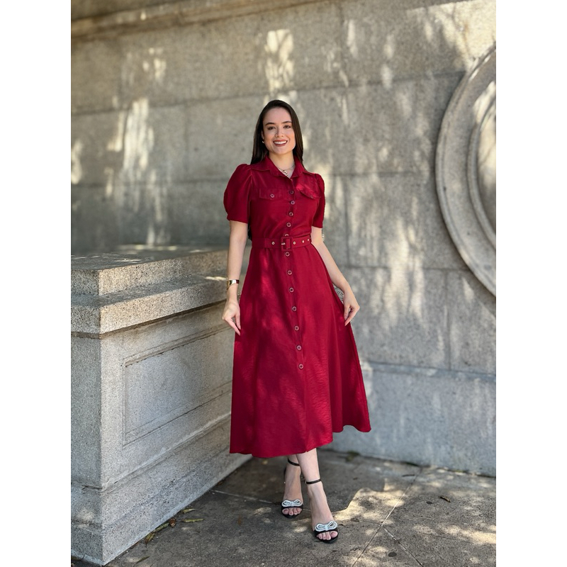 Vestido chemise Max Midi Liso Sensorial com botões moda feminina