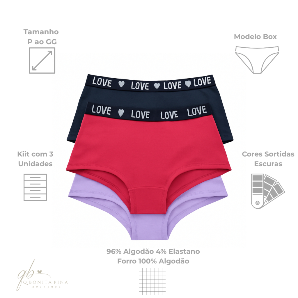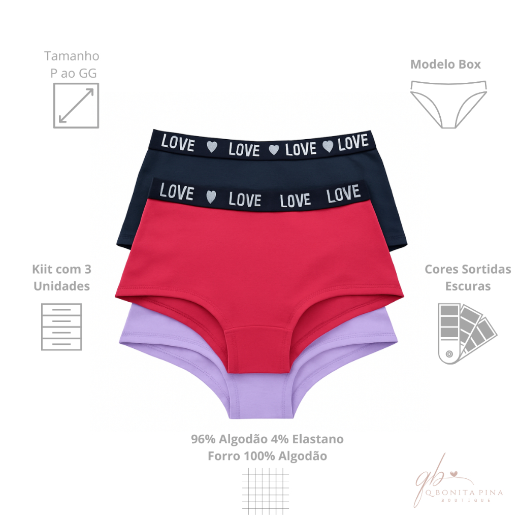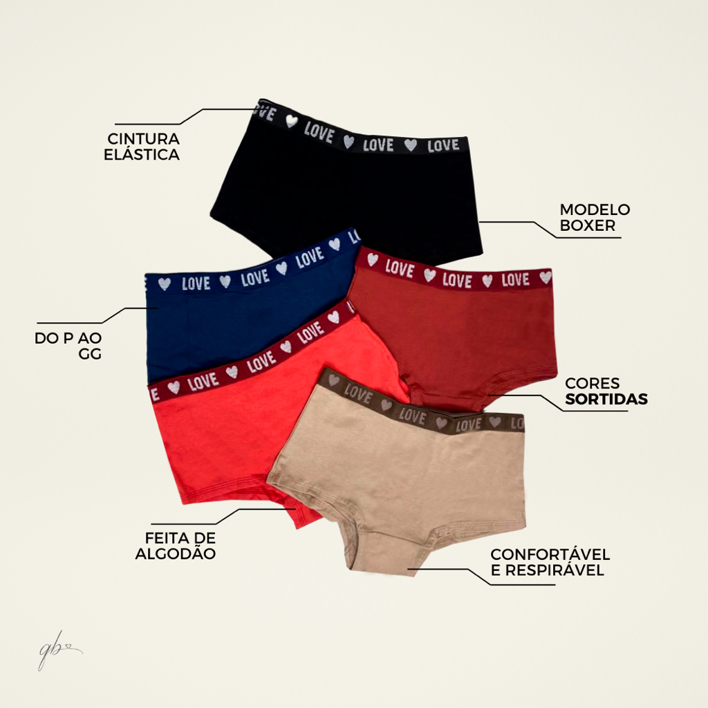 Kit Calcinhas Boxer Cueca Shorts Feminina Algodão Conforto Diário Cós Alto