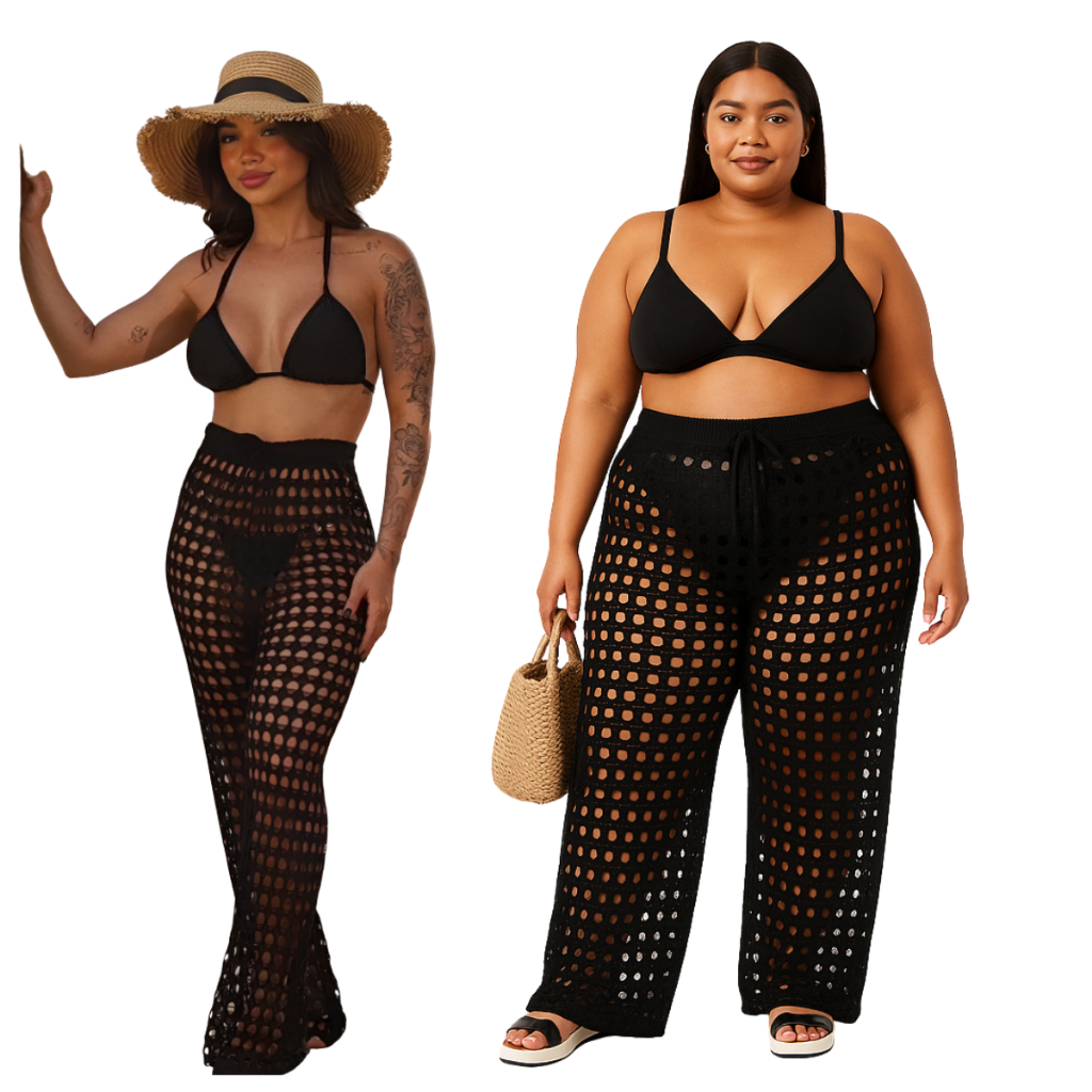 Calça Saída de Praia Crochê Feminina Slim & Plus Size Leve, Fresca e Confortável Moda Verão 26 Praia Piscina
