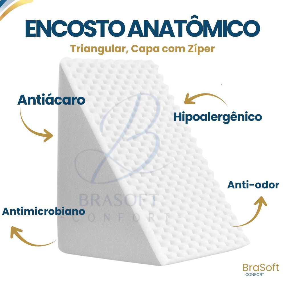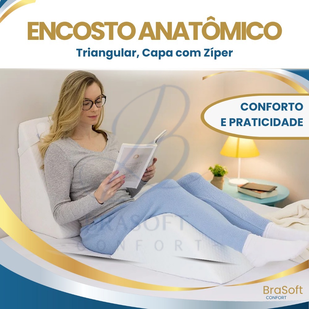 Encosto Anatômico, Triangular, Branco, Leitura, Pós Operatório, Capa Com Zíper, BraSoft Confort