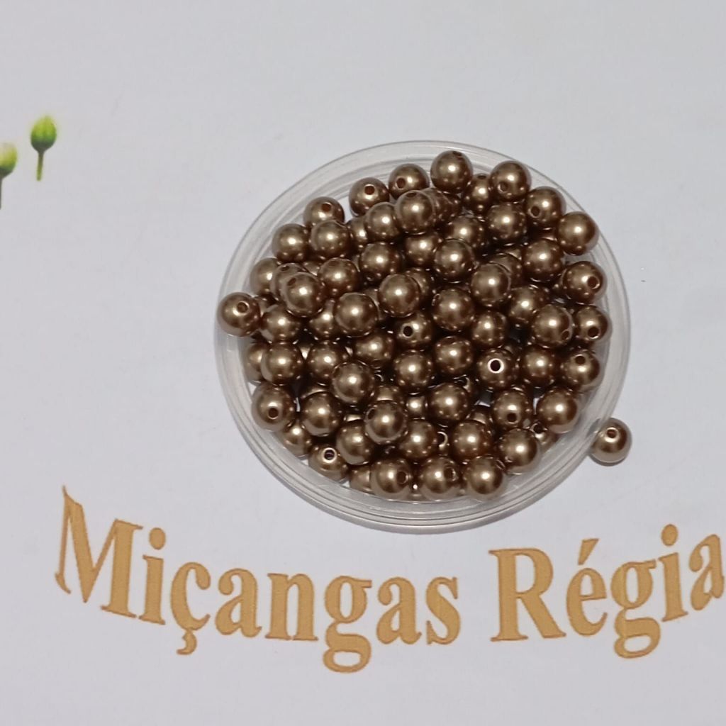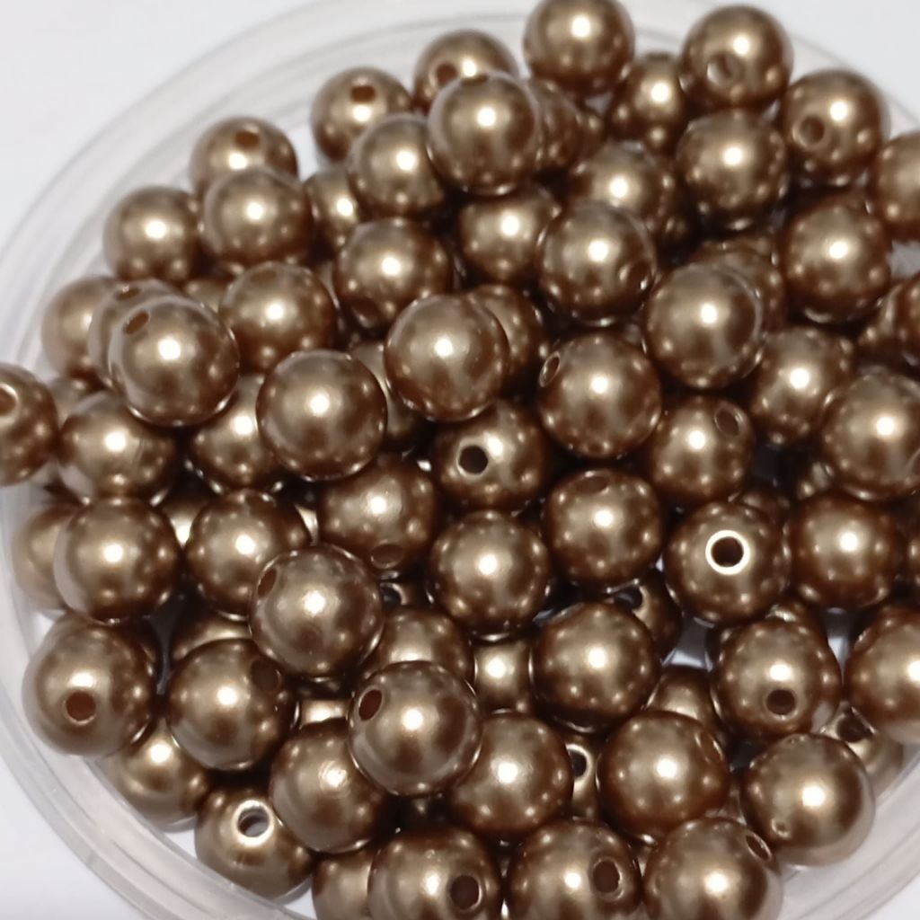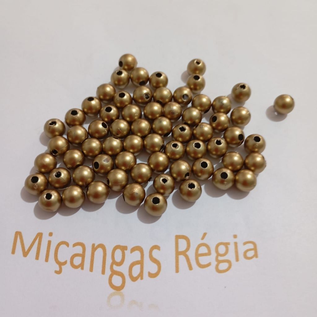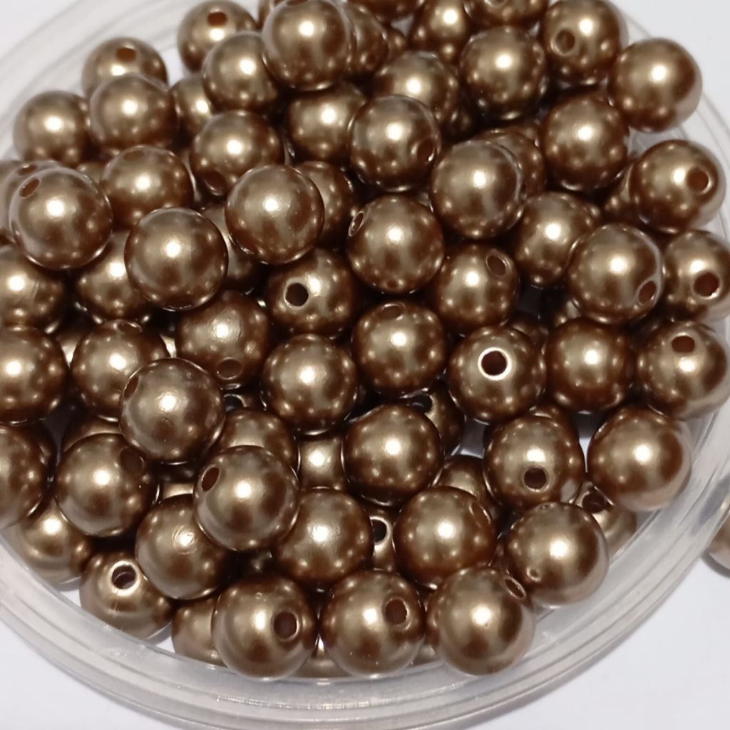Pérola Dourada Acrilica com Furo Passante 8mm Pacote com 100 Unidades