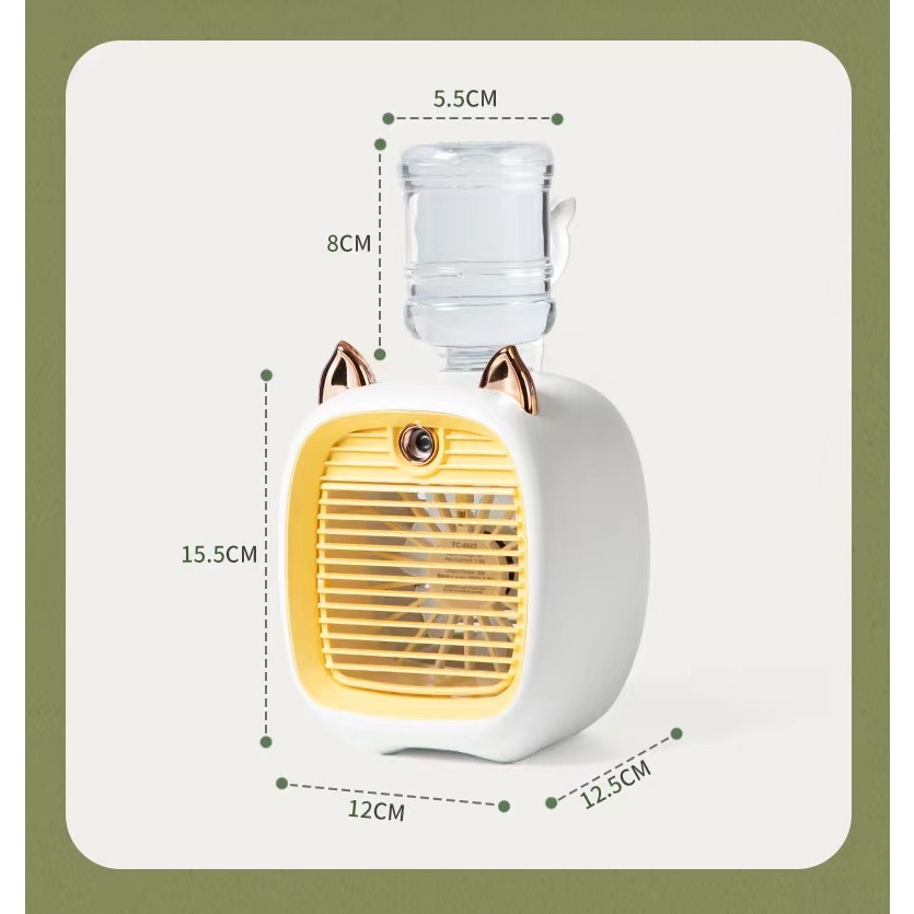 Mini Ar e Ventilador Gatinho Portatil Recarregável de Mesa com Umidificador Função de Refrigeração para Escritório