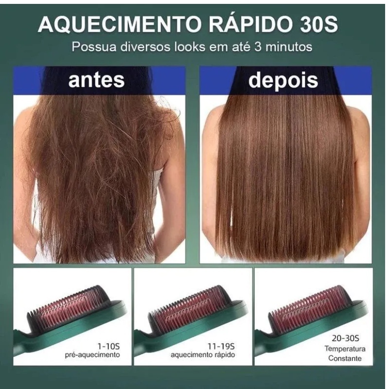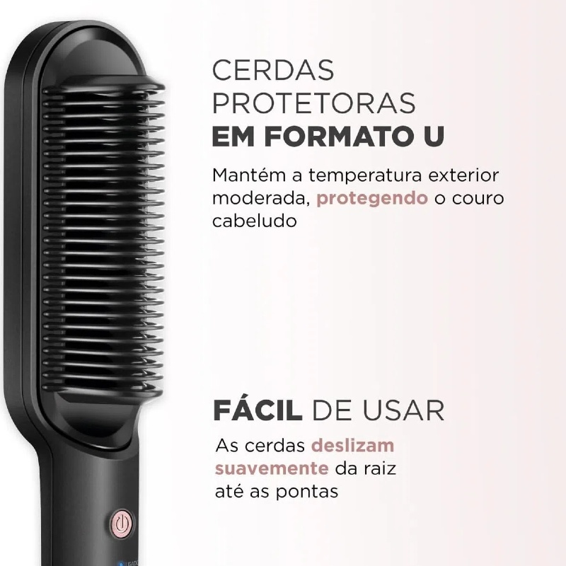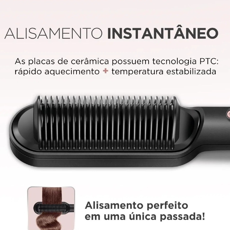 Escova Alisadora Secadora Seca Alisa E Modela Cabelo Comb,Hidrata,Modela,Alinha e Anti-Frizz Preto