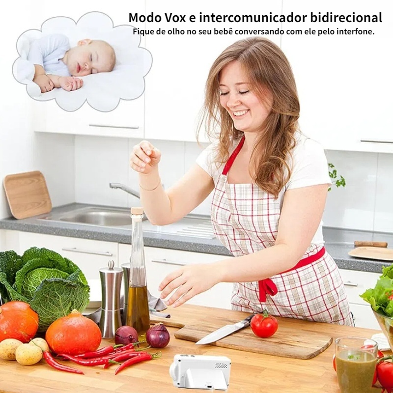 Babá Eletrônica Sem Fio portátil Com Monitor Visão Noturna, baby monitor seguranca com audio(Rosa)