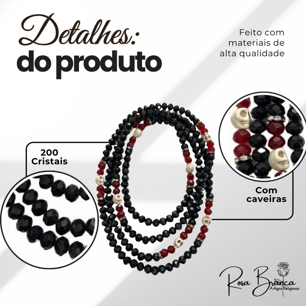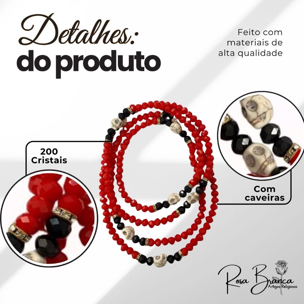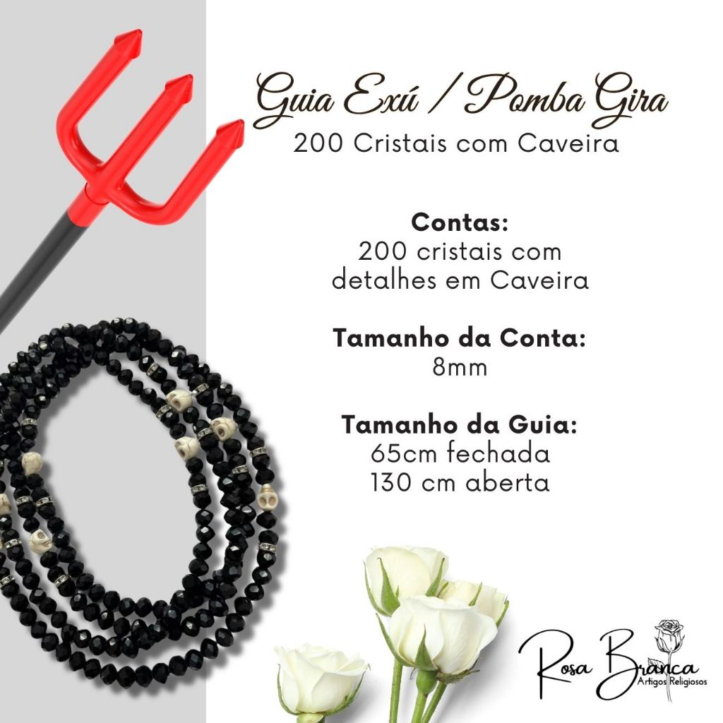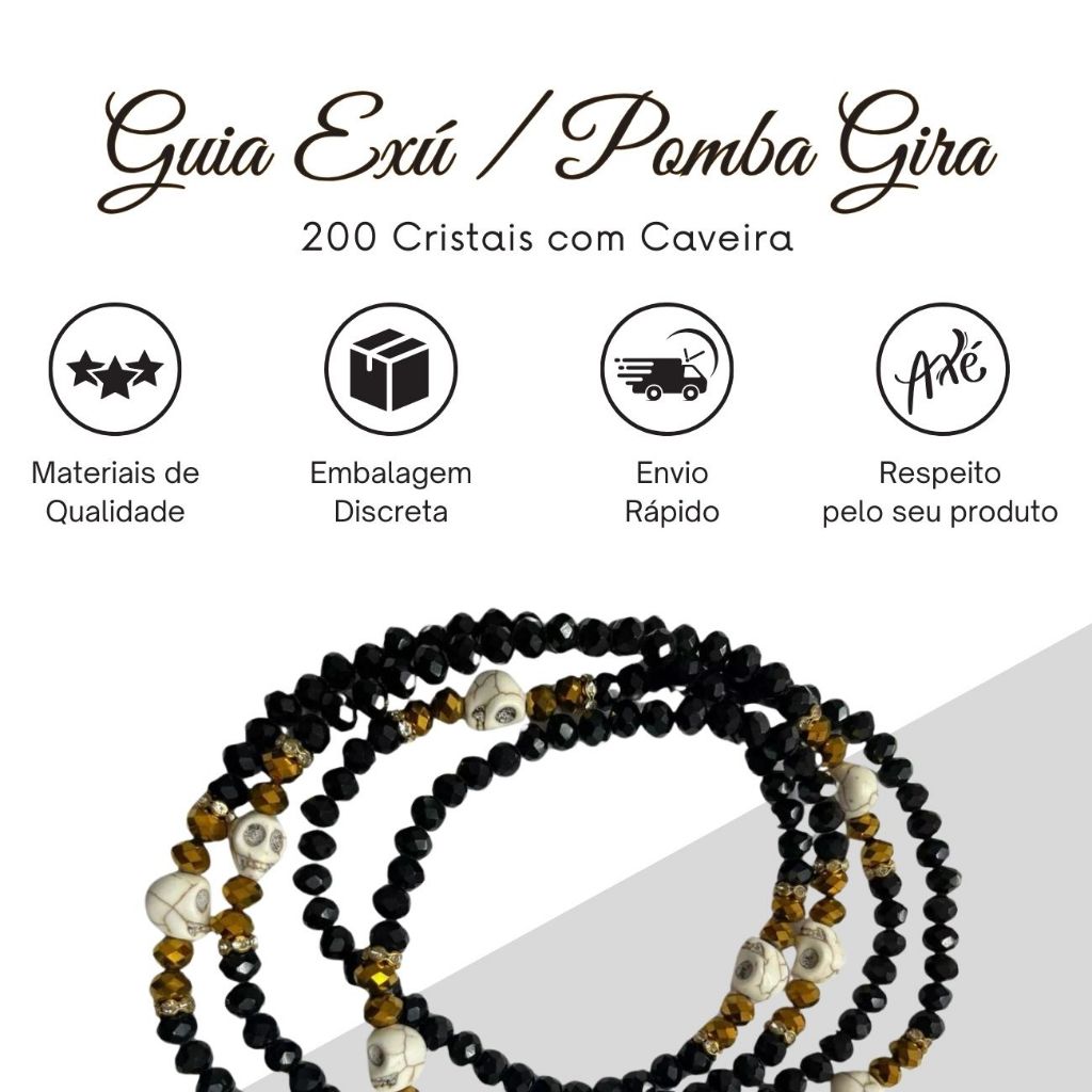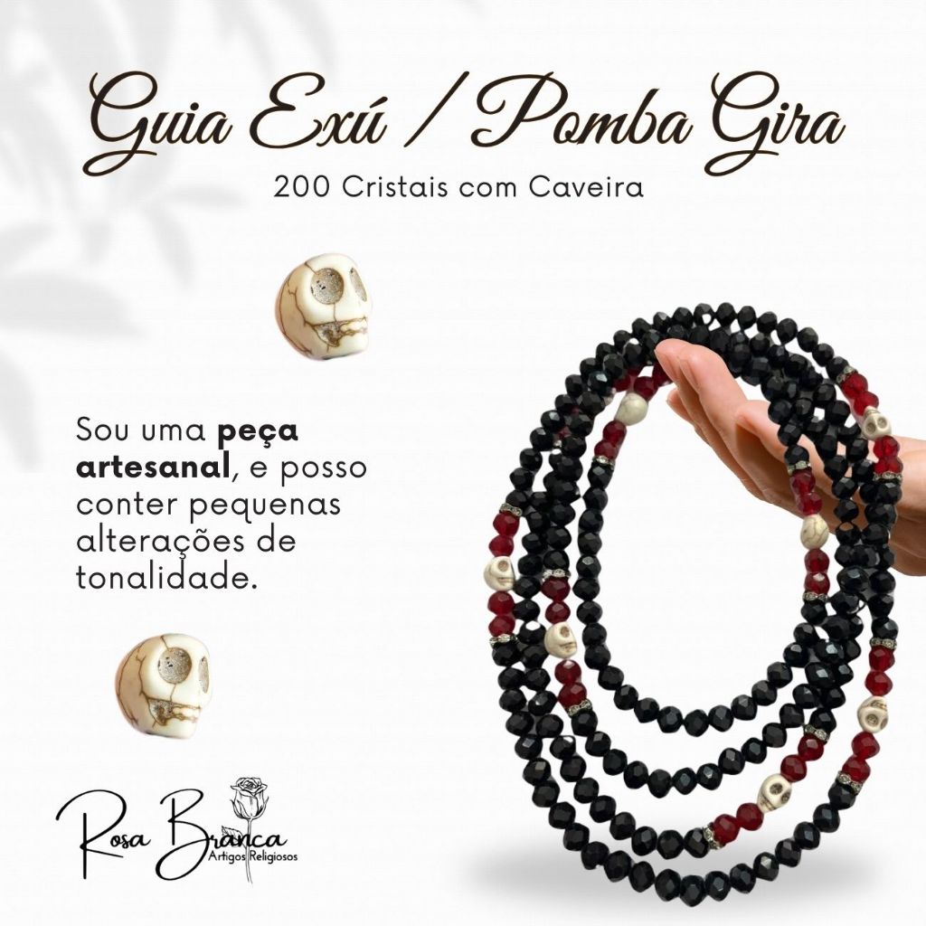Guia Exú ou Pomba Gira de Cristal Com Caveira 200 Cristais e Firma