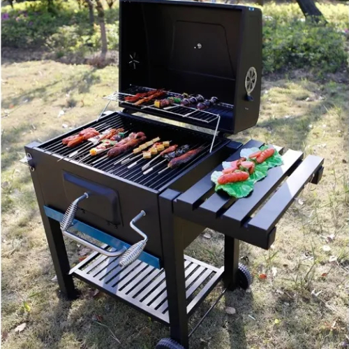 Churrasqueira a Carvão Gourmet Móvel com Mesinha Lateral Grelha Termômetro