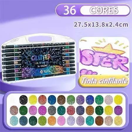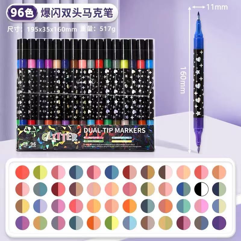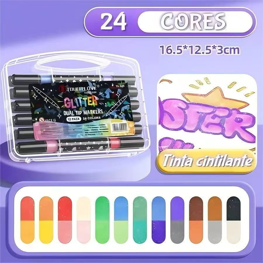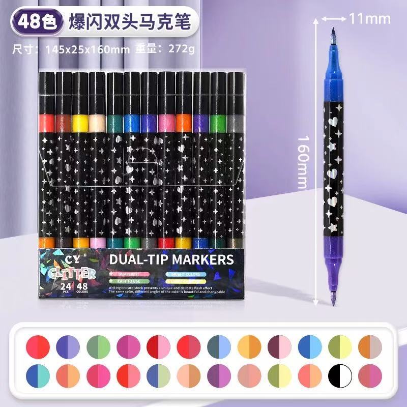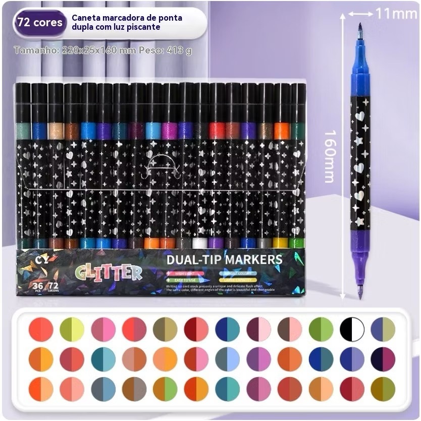 Marcador metálico 12/24/36/48 caneta de glitter de cabeça dupla marcador de cabeça dupla brilhante