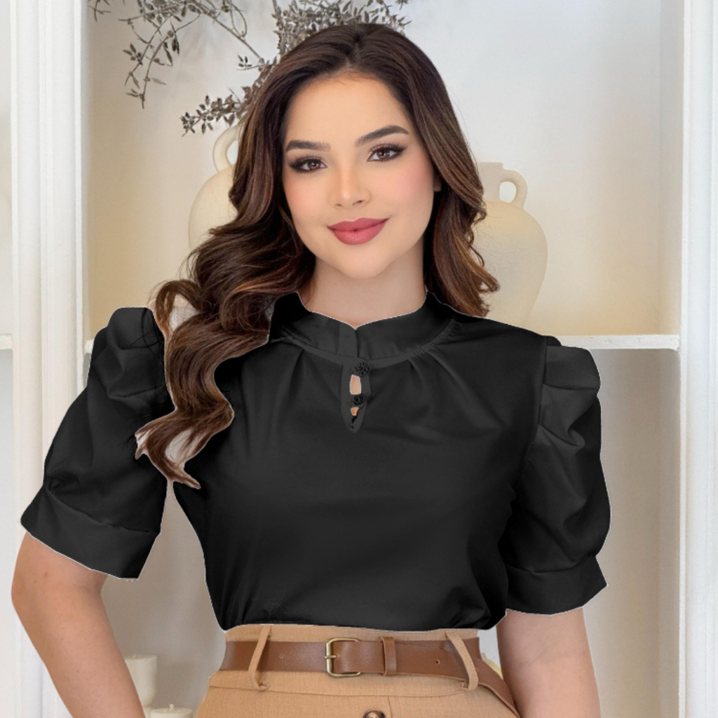 Blusa Manga Curta Lisa Moda Feminina Evangélica Básica Elegante Social Executiva Cheque Soltinha