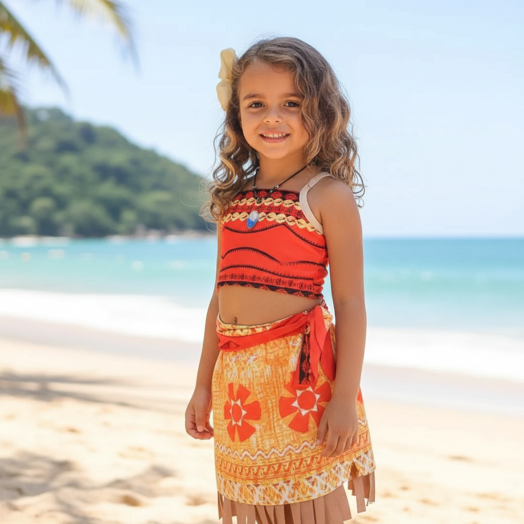 Fantasia Moana Infantil + Colar havaina Carnaval dia das crianças
