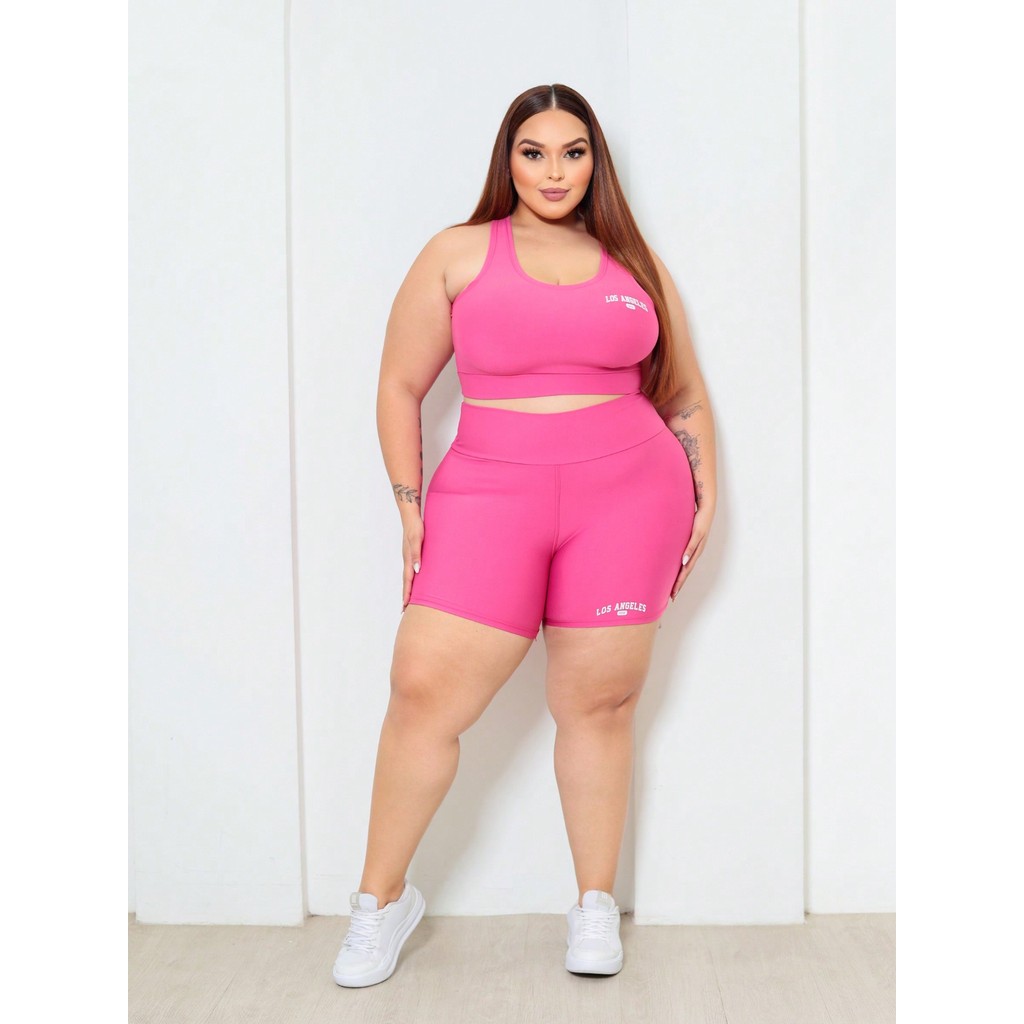Conjunto Top e Shorts Feminino Plus size Los Angeles fit
