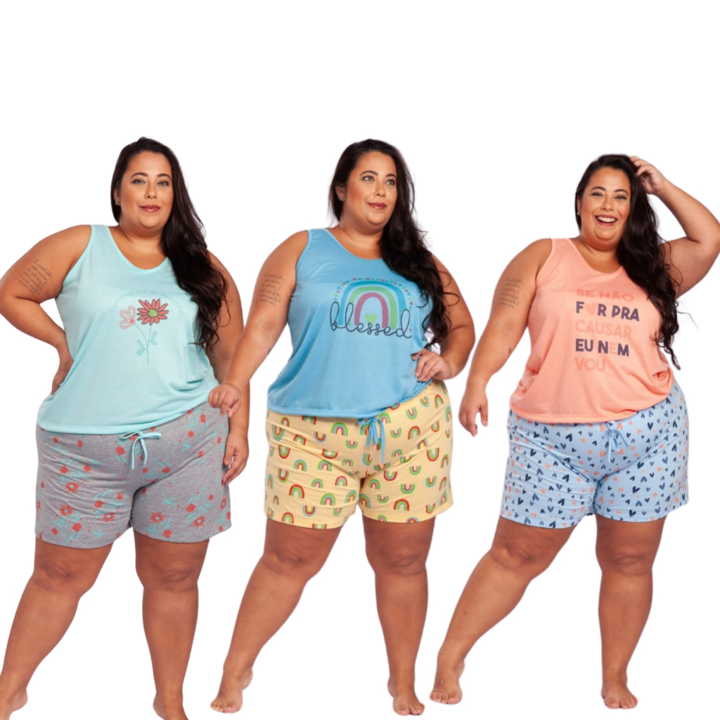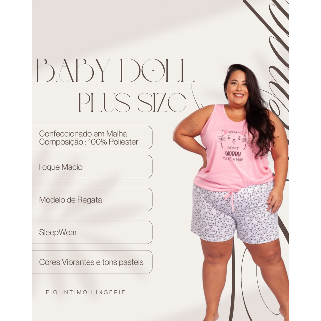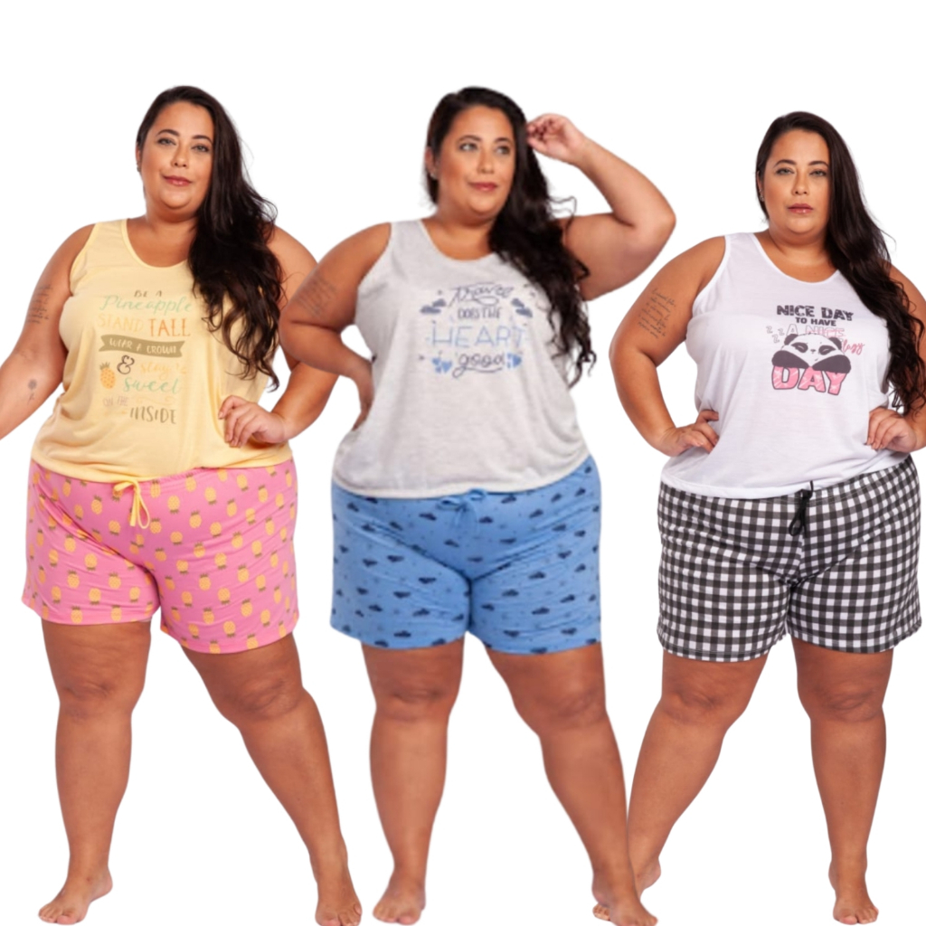Kit 3 Pijama Short Doll Plus Size Baby Doll Malha