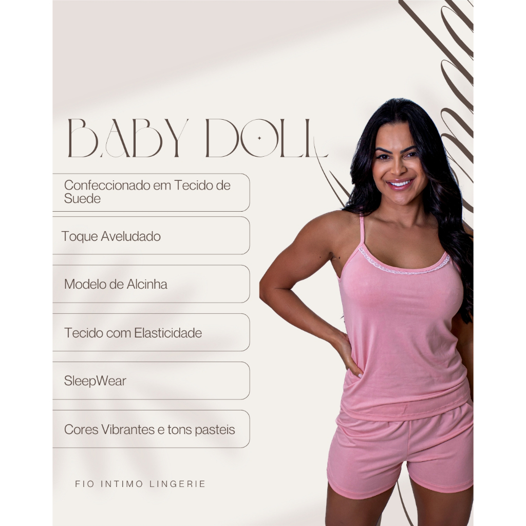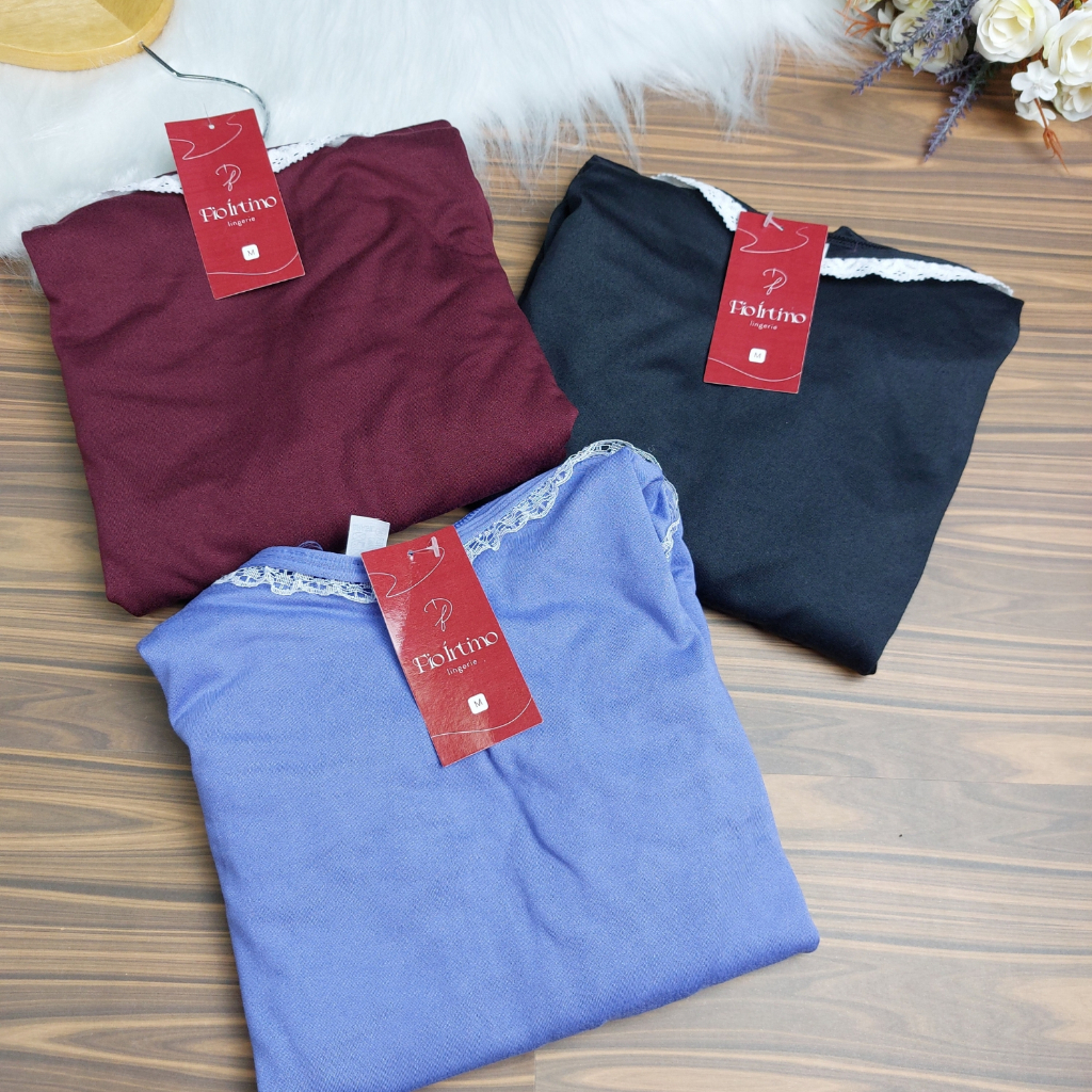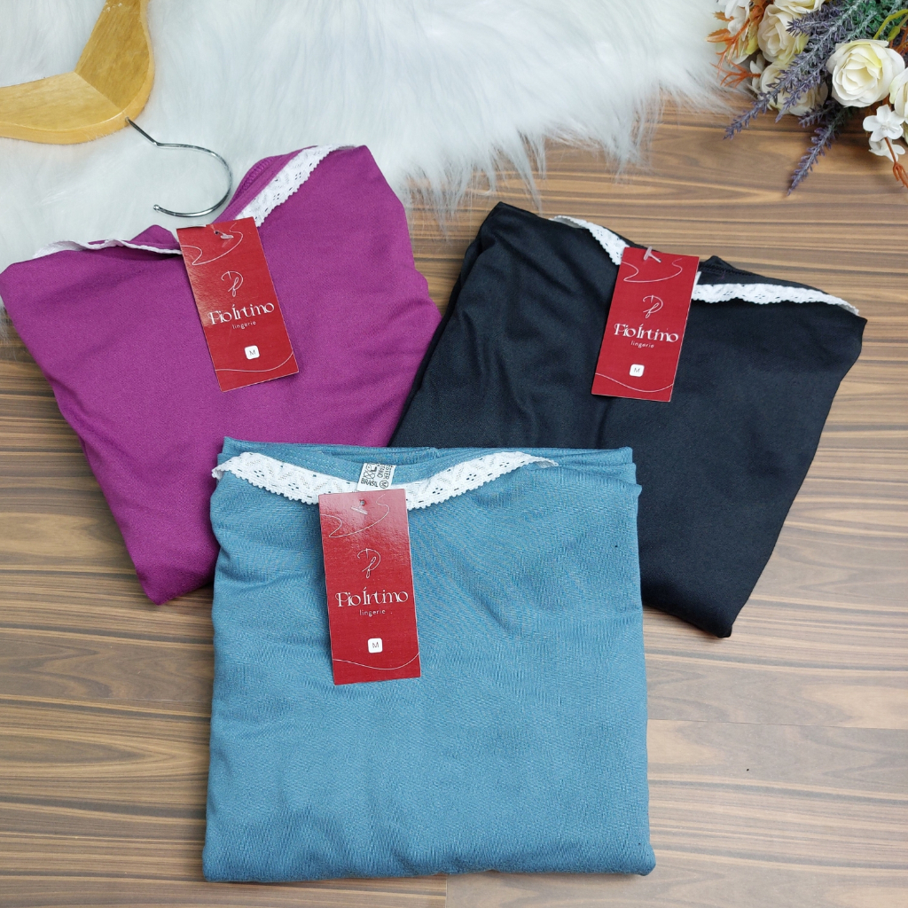 KIT COM 3 PEÇAS BABY DOLL JUMA SUEDI LISO COM RENDA PIJAMA LINHA NOITE CONFORTÁVEL MODA FEMININA