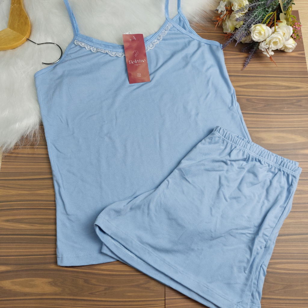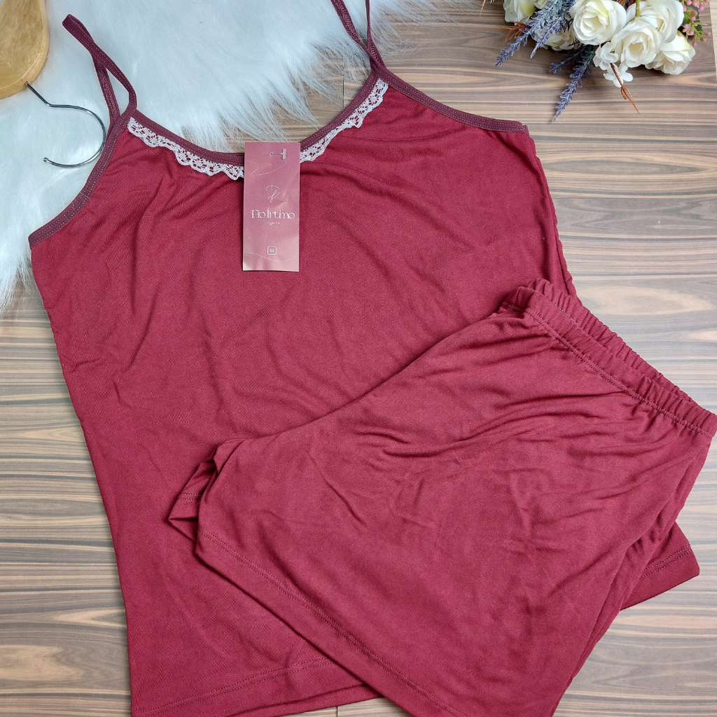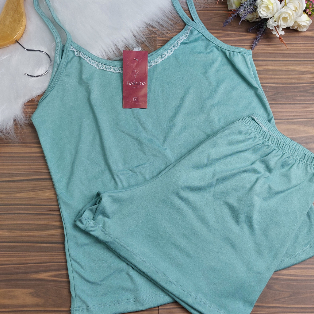 KIT COM 3 PEÇAS BABY DOLL JUMA SUEDI LISO COM RENDA PIJAMA LINHA NOITE CONFORTÁVEL MODA FEMININA