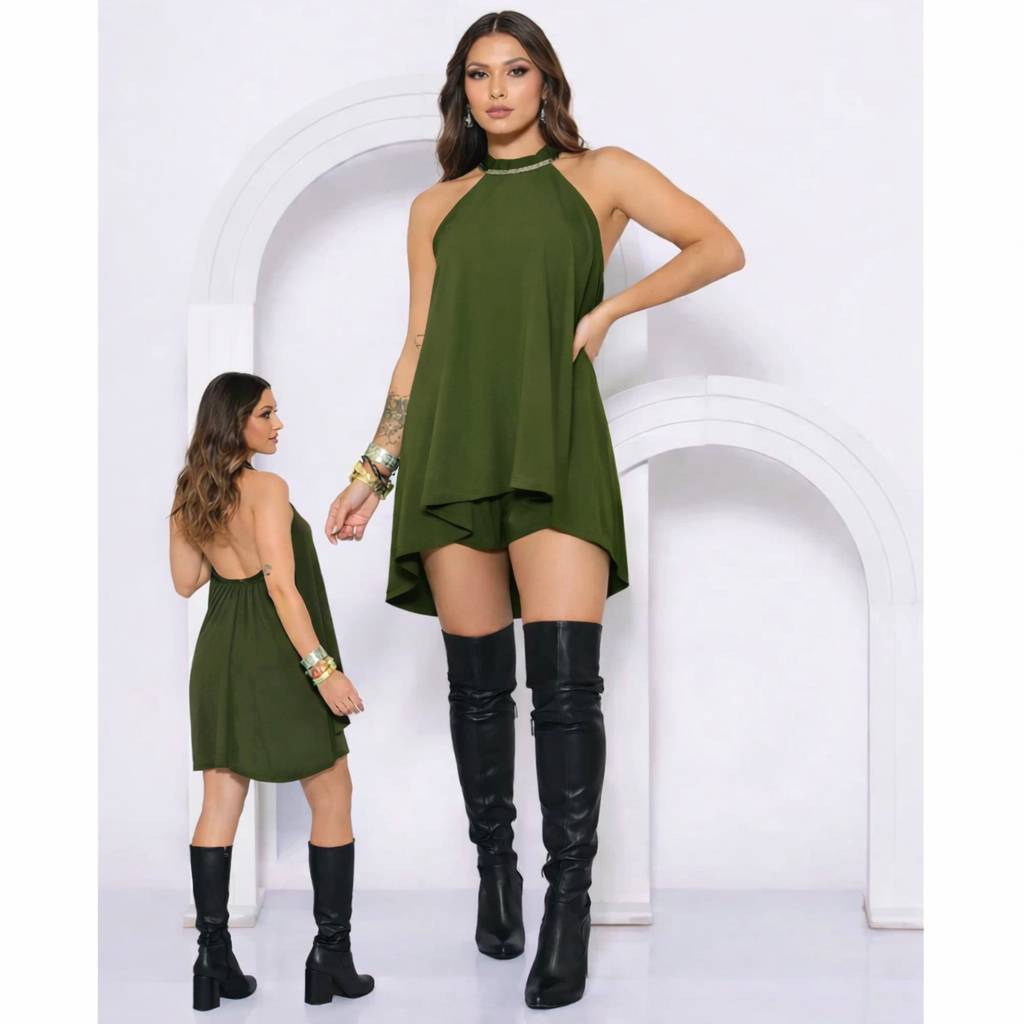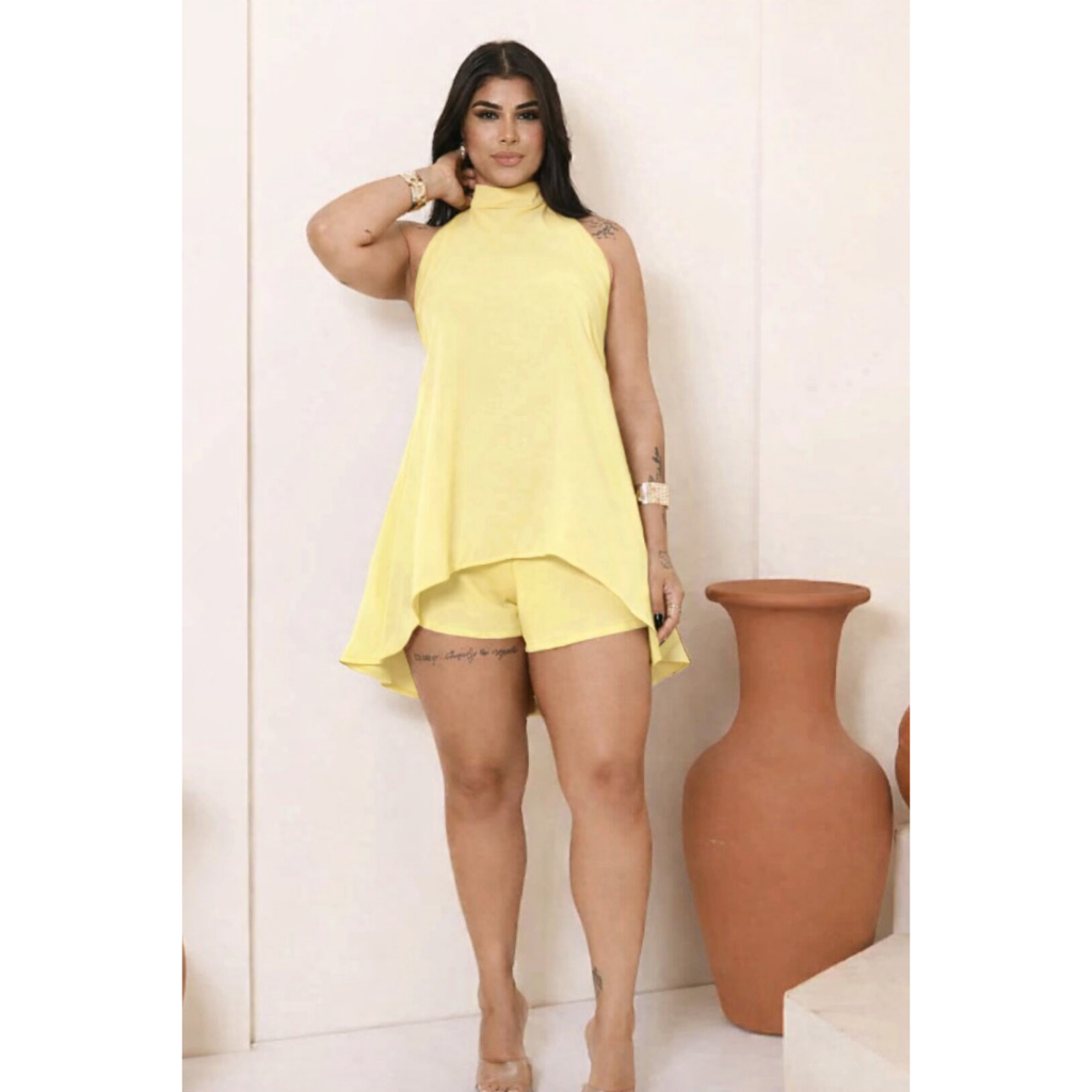 Conjunto Feminino Crepe Dunas Premium Frente Única Estilo Com Decote nas Costas