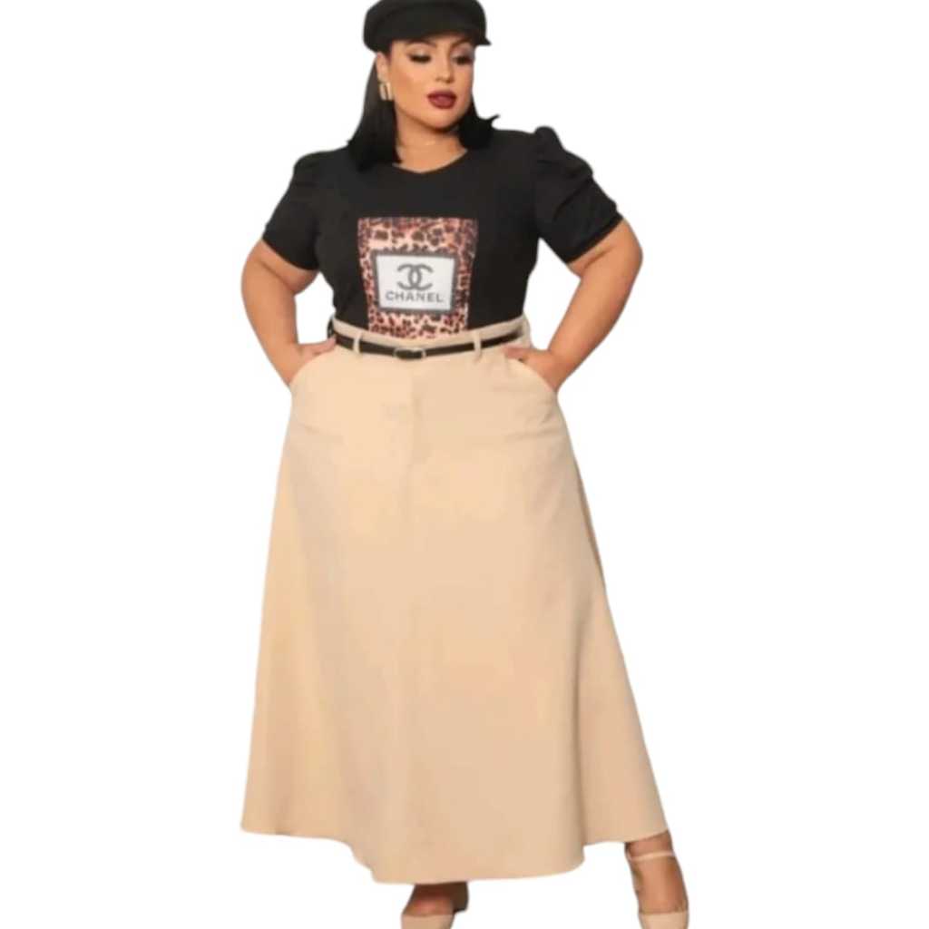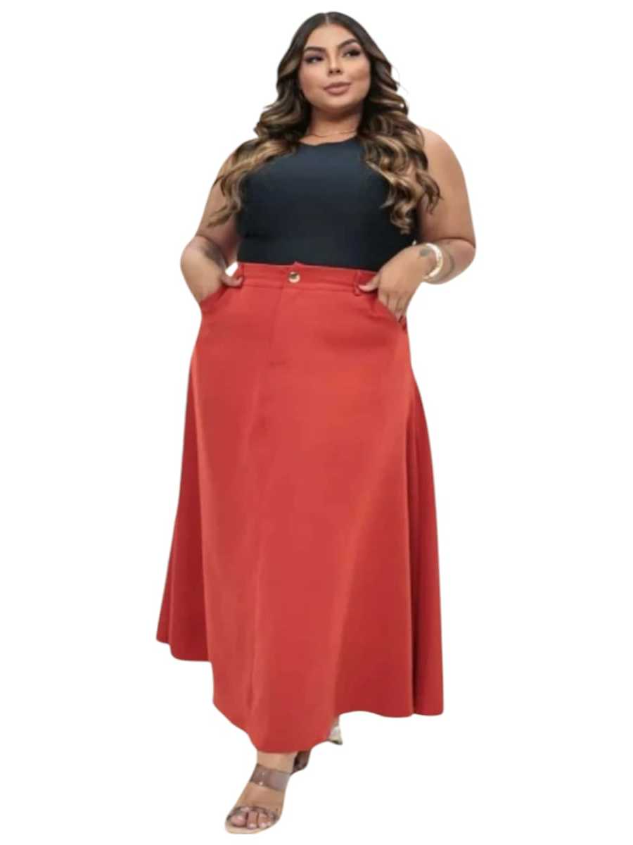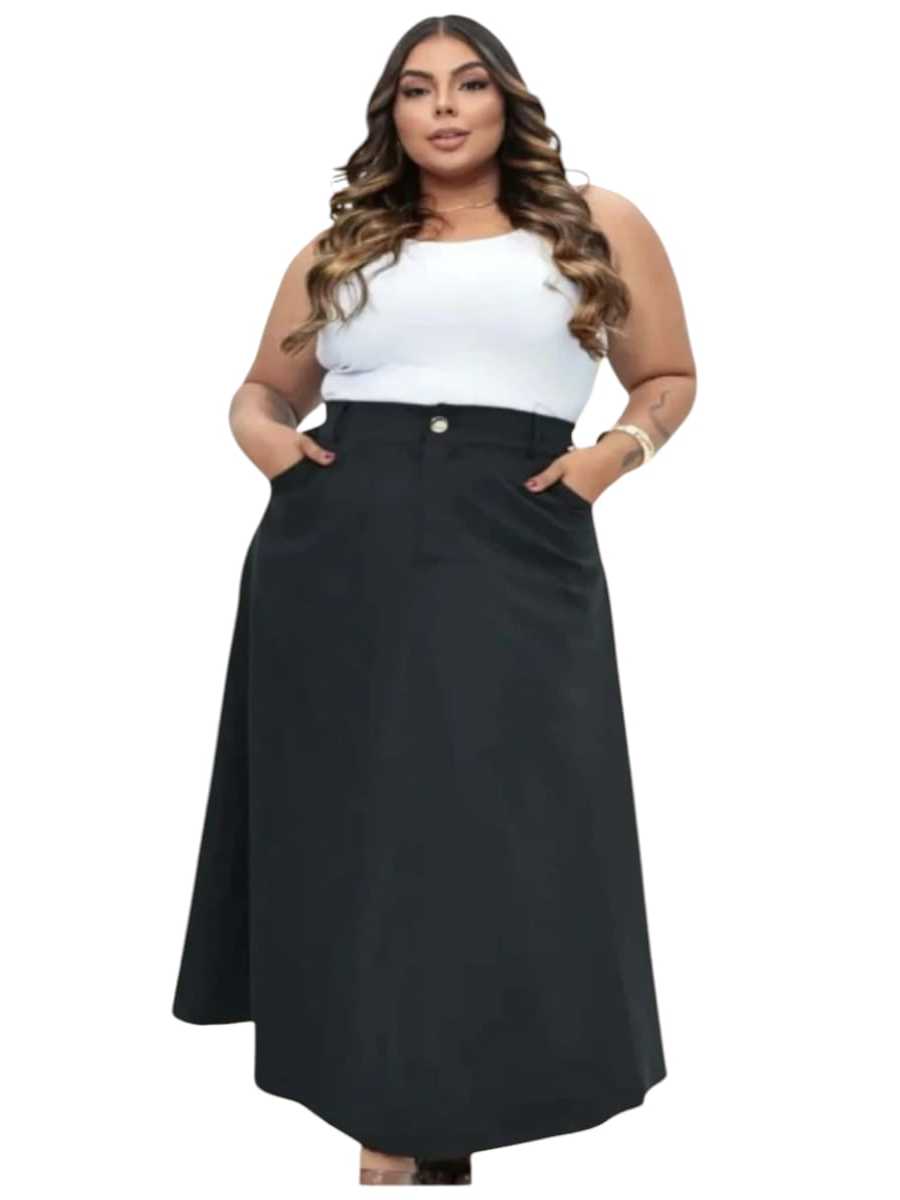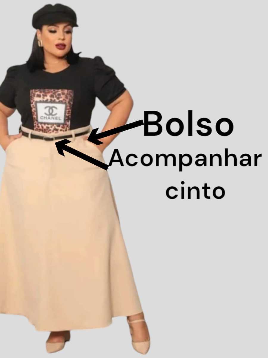 Saia feminina plus size alfaiataria longo com cinto moda evangelica