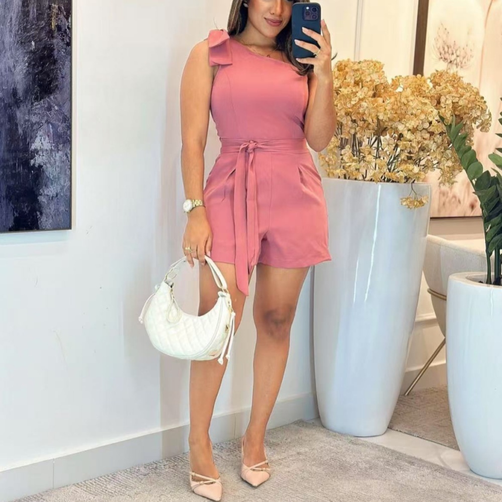 Macacão feminino Short Alfaiataria Com Laço No Ombro 00231