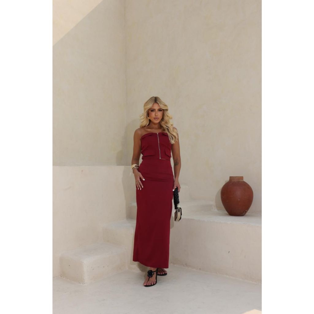 Conjunto Saia Longa e Cropped Tomara que Caia com Zíper e Bolso Frontal 12-13