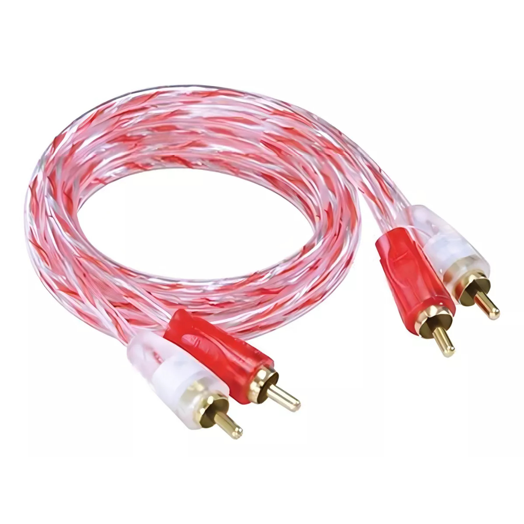 Cabo Rca 1 Metro Injetado Cobre 1m Listrado Branco e Vermelho 4mm