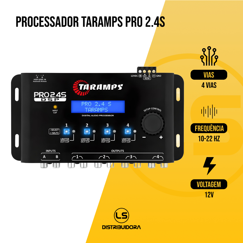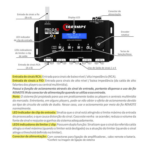 Processador De Audio Digital Taramps Pro 2.4s Equalizador 2 Entradas 4 Saidas 12v Crossover 4 Vias