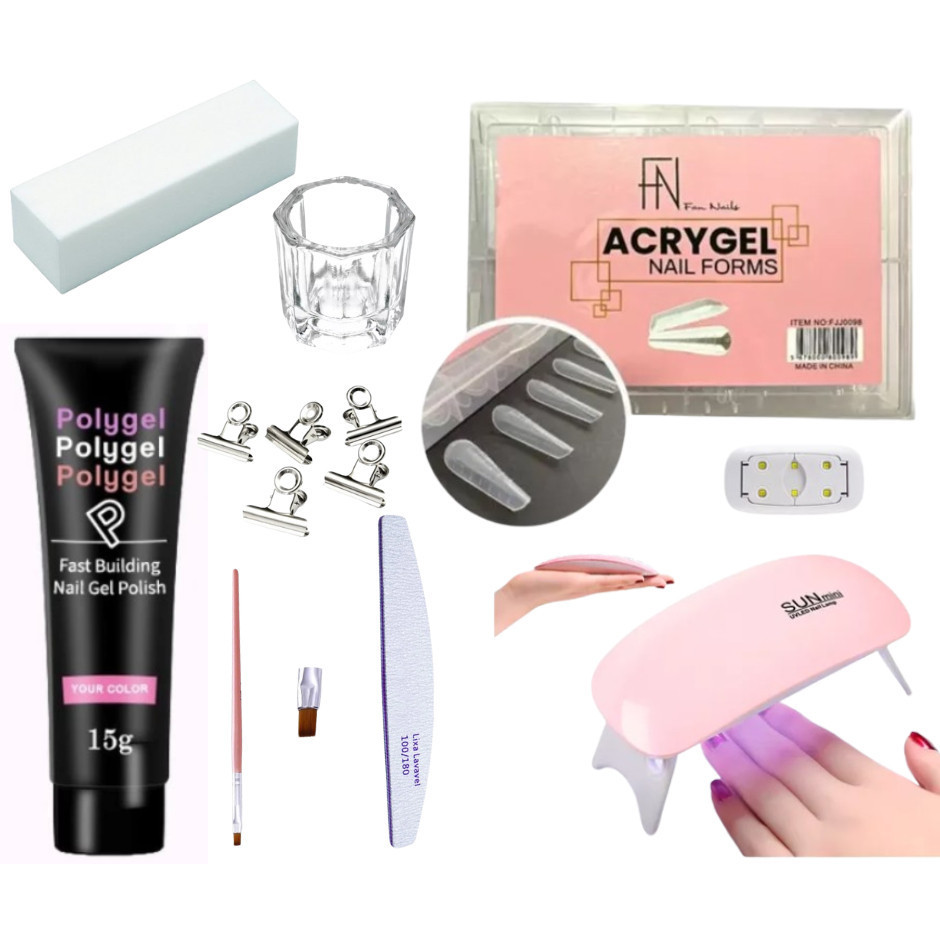 kit polygel ALONGAMENTO DE Unha Gel Molde F1 Poligel CABINE SUN KIT INTERMEDIARIO CURSO DE MANICURE