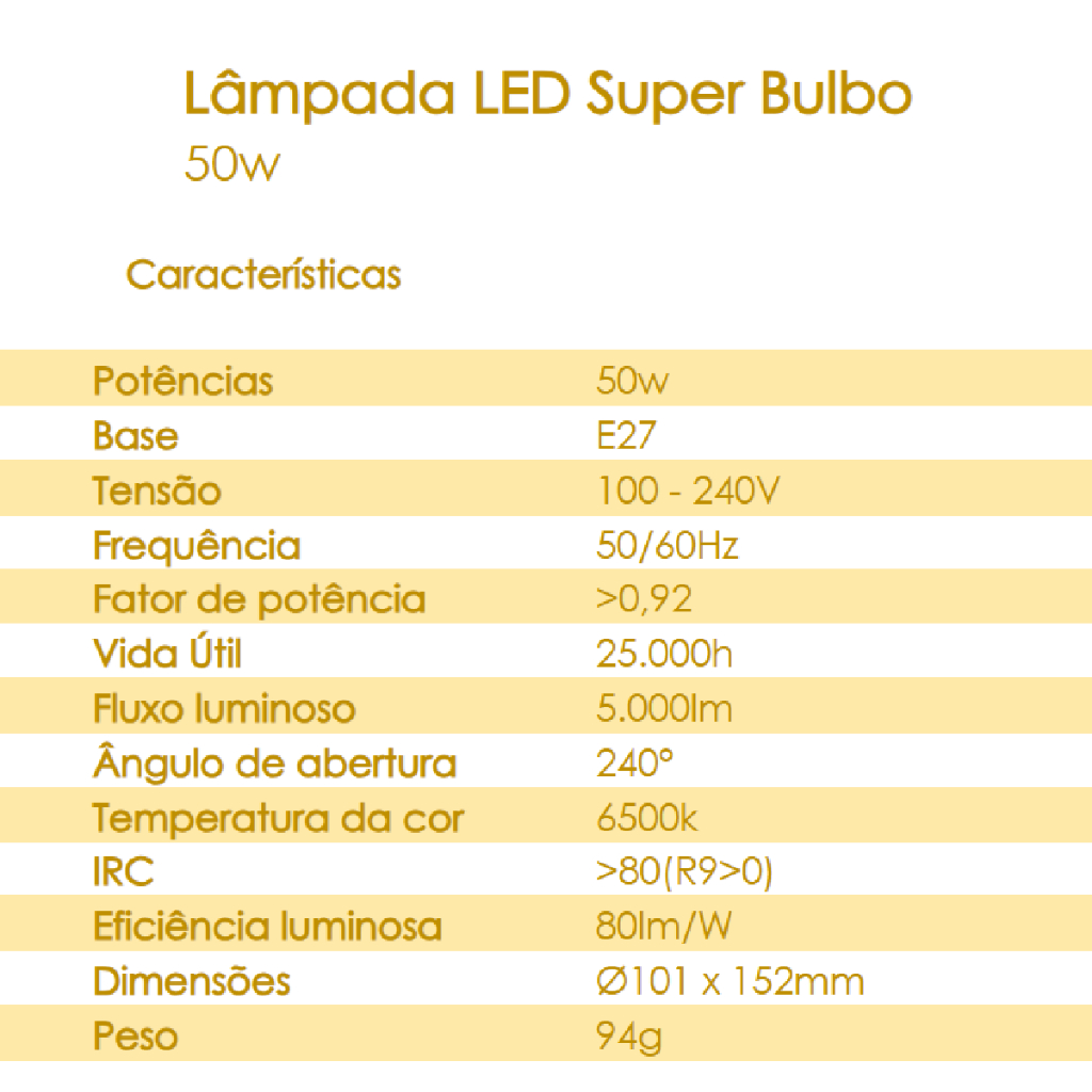 Kit 2/3/4/5/8 Lâmpadas LED Superbulbo 50w Branco Frio Elgin