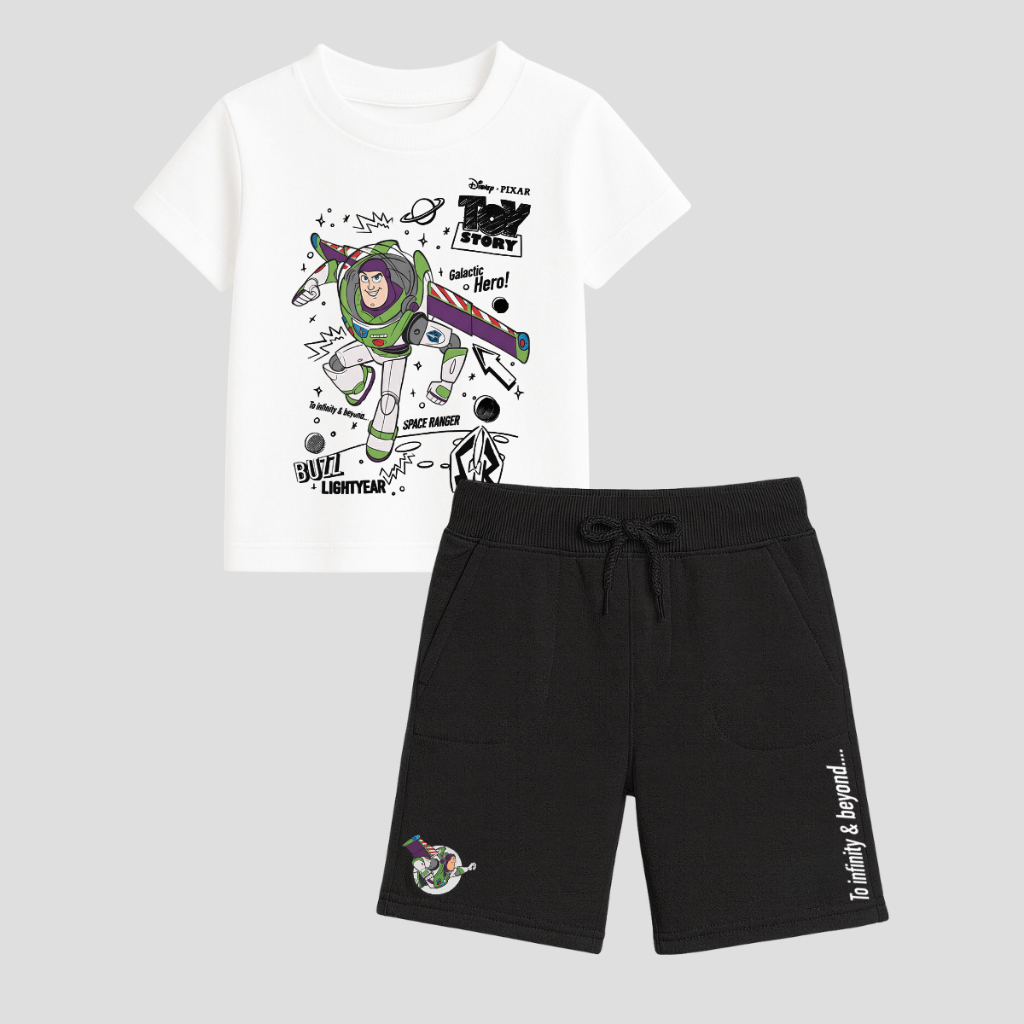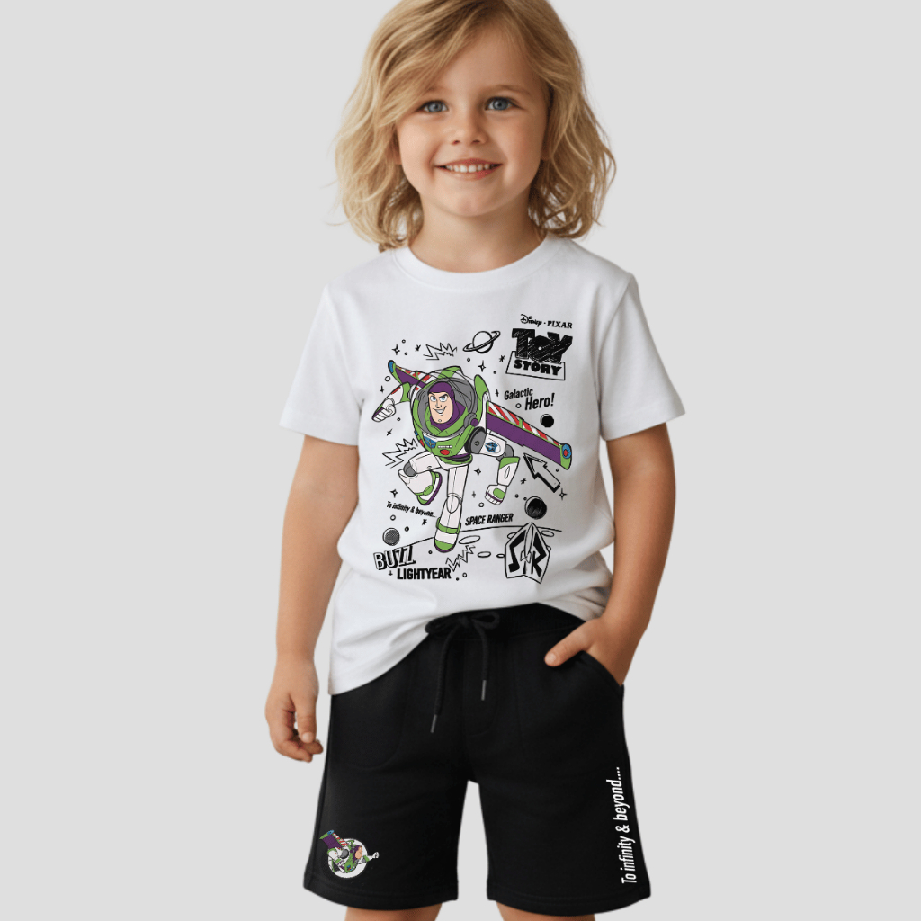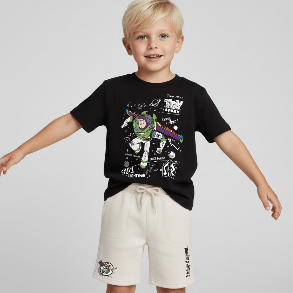Conjunto Infantil Toy Story Buzz Lightyear Camiseta 100% Algodão + Bermuda Moletom Estampa Premium