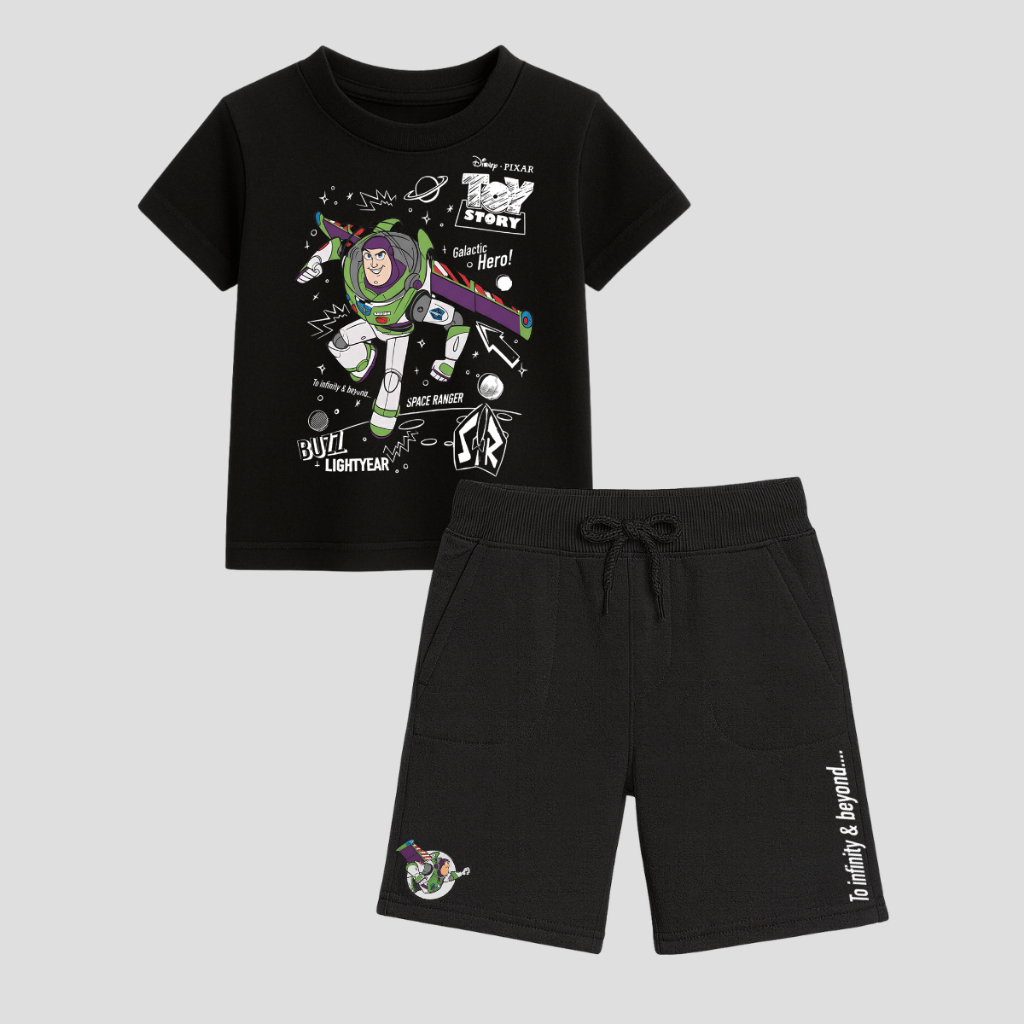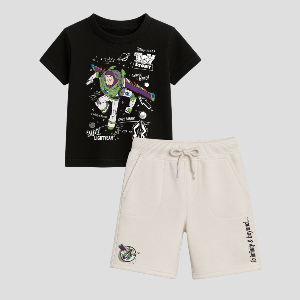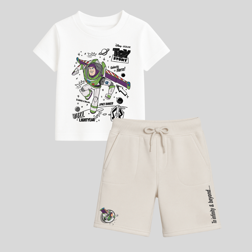 Conjunto Infantil Toy Story Buzz Lightyear Camiseta 100% Algodão + Bermuda Moletom Estampa Premium
