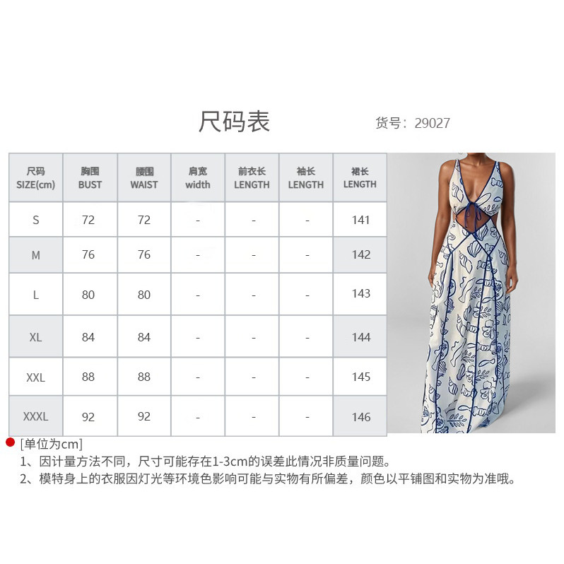 Vestido de cinto com estampa oca de temperamento sexy sem costas (29027)