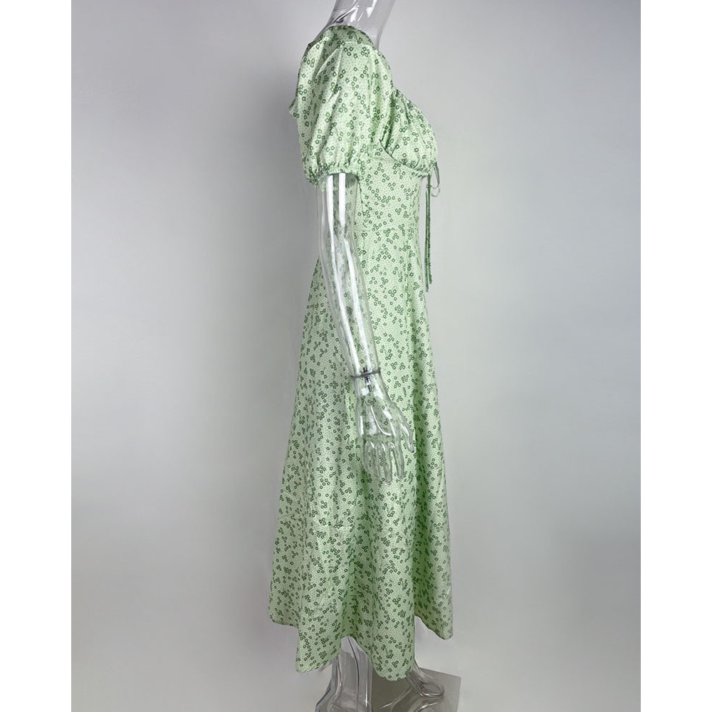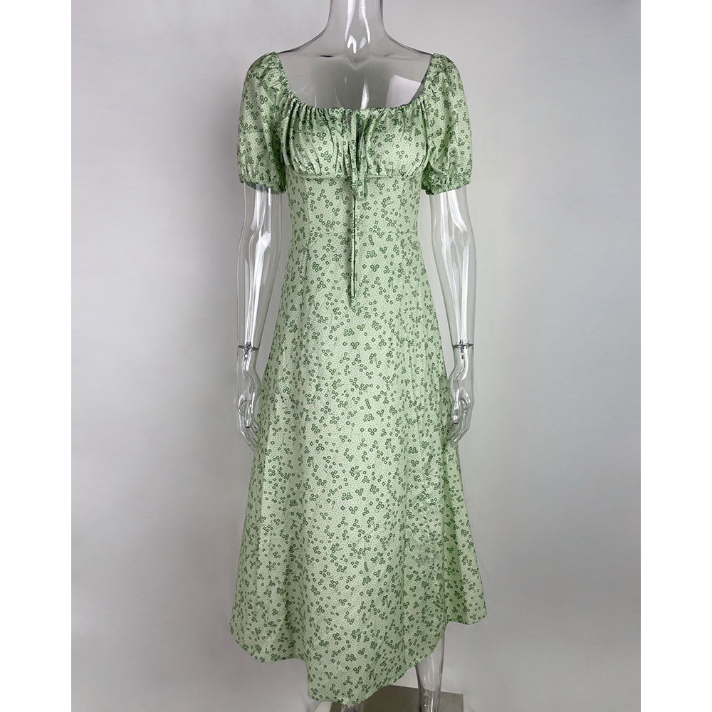 Vestido floral francês feminino Senhora com garfo grande vestido suspensor (21026)