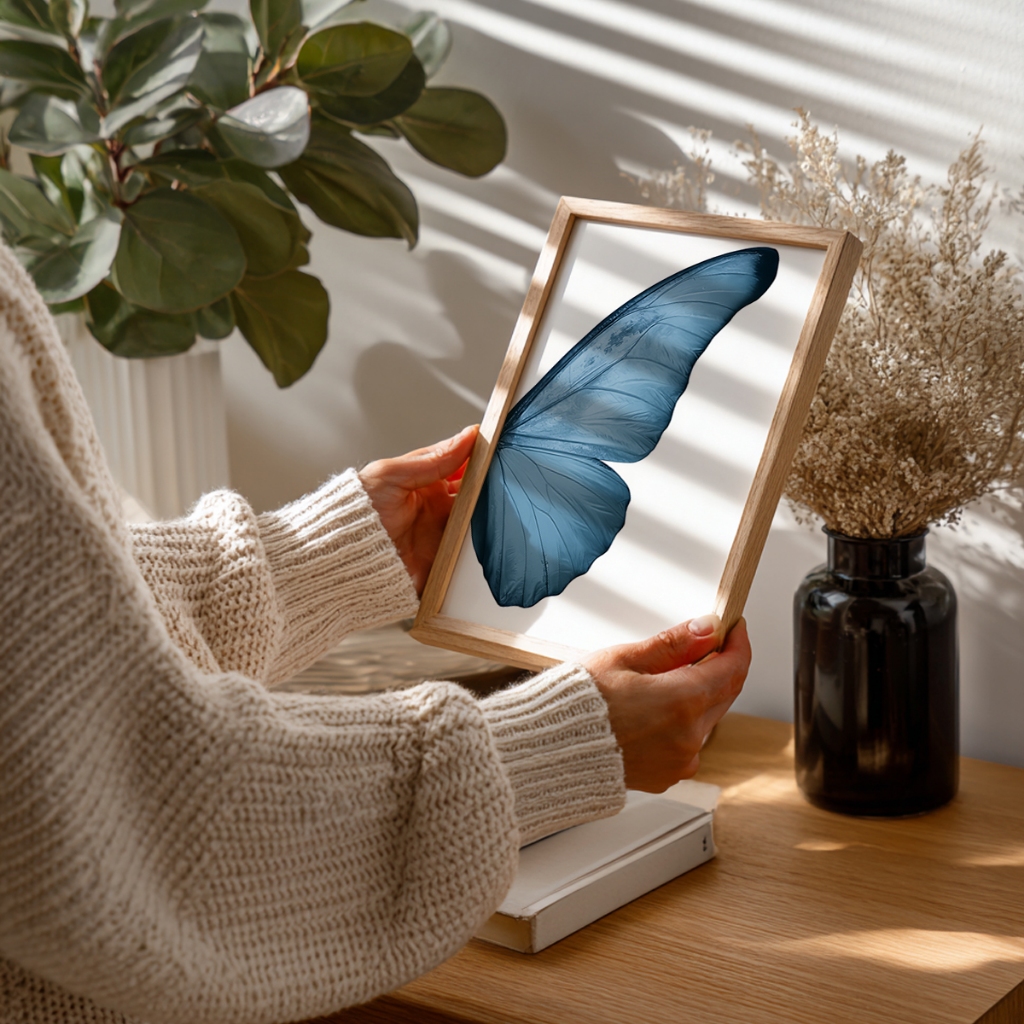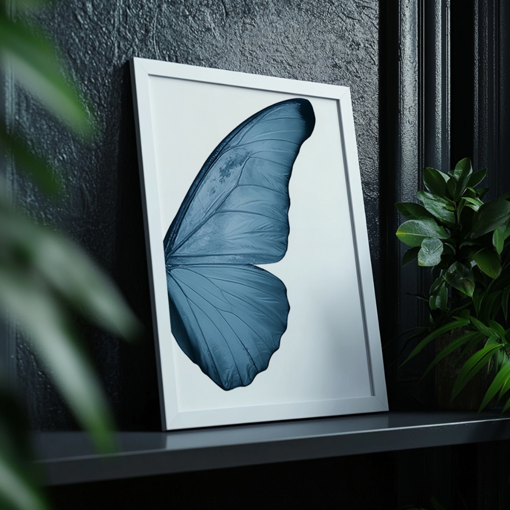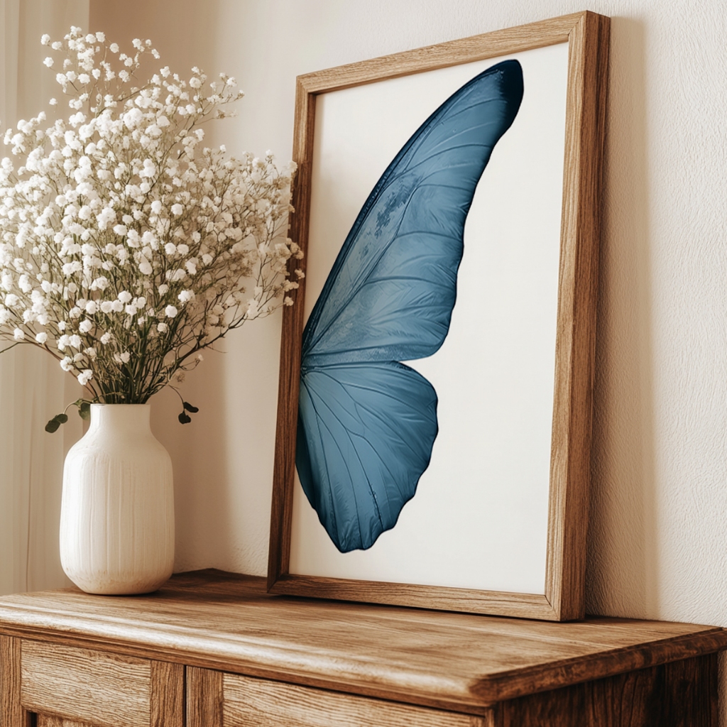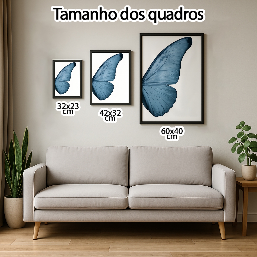 Quadro Decorativo Asa Borboleta Azul Minimalista Delicado Arte Moderna Parede Decoração