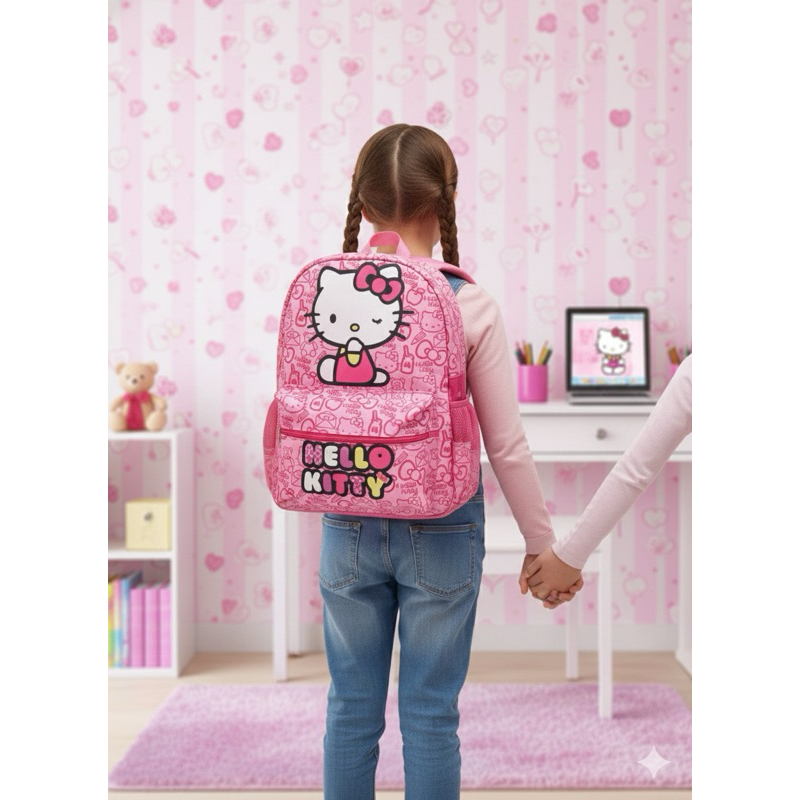 Mochila bolsa menina hello kitty juvenil rosa tamanho grande envio rápido
