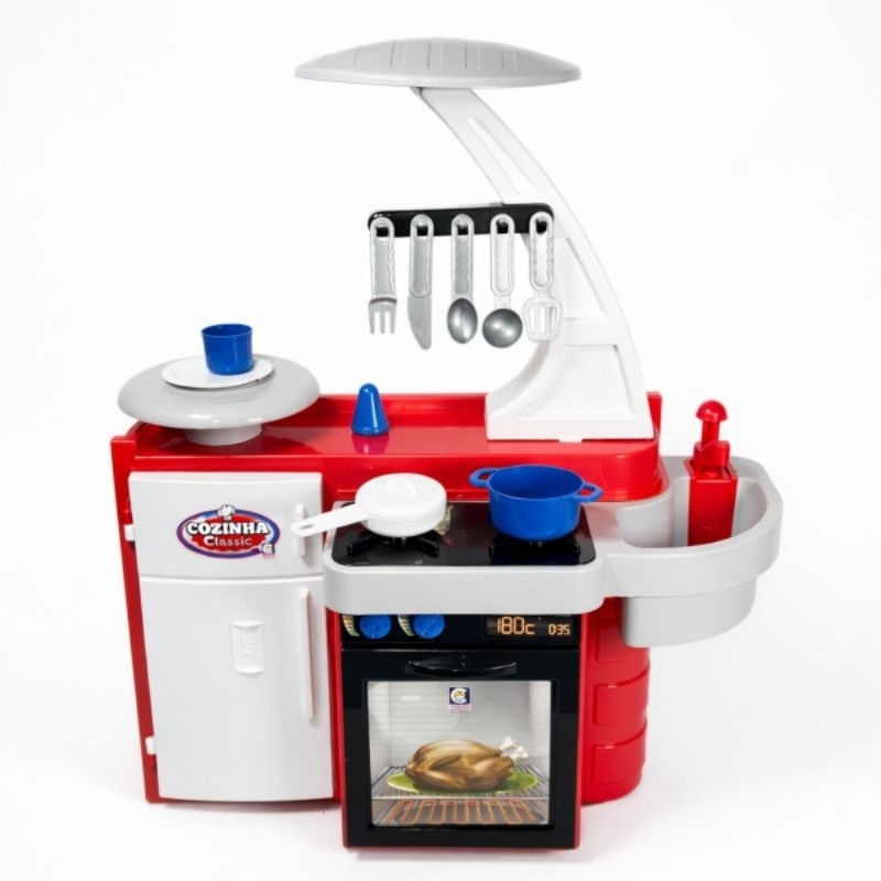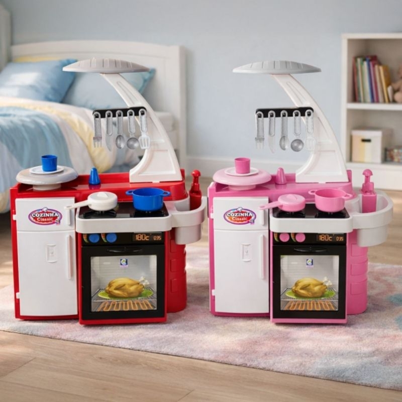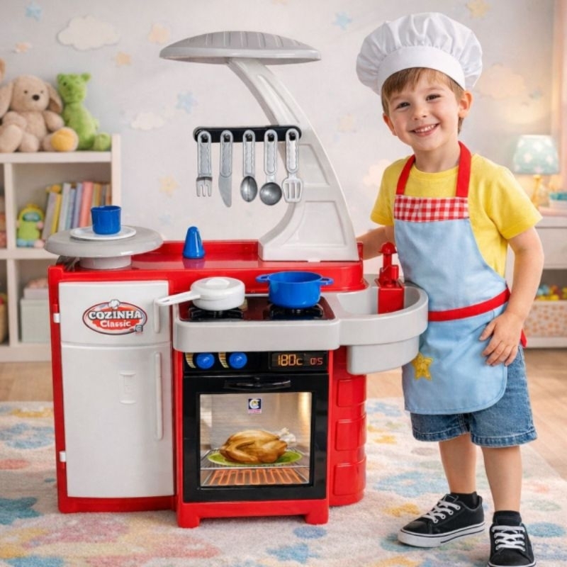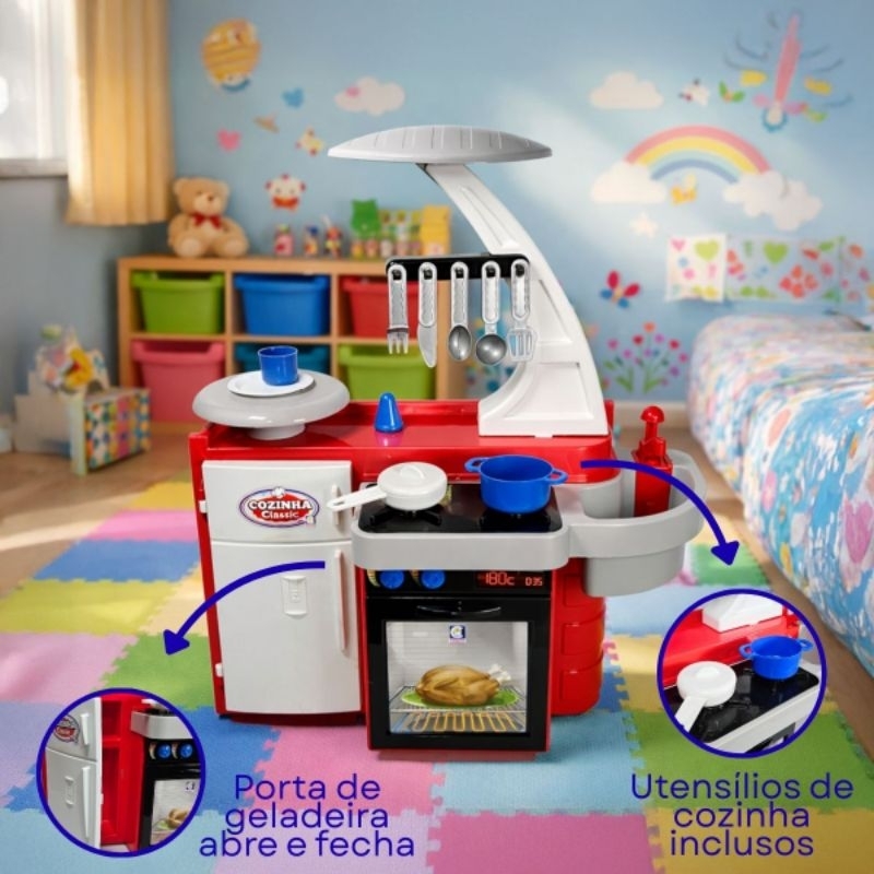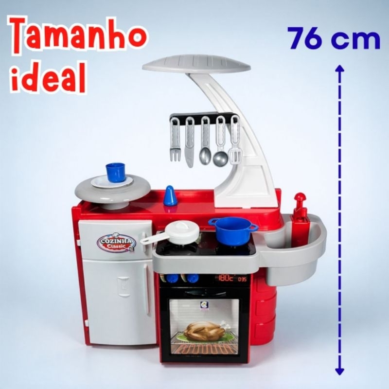 Cozinha Infantil Grande Completa Com Geladeira Fogão Forno Sai Água de Verdade Brinquedo Menino