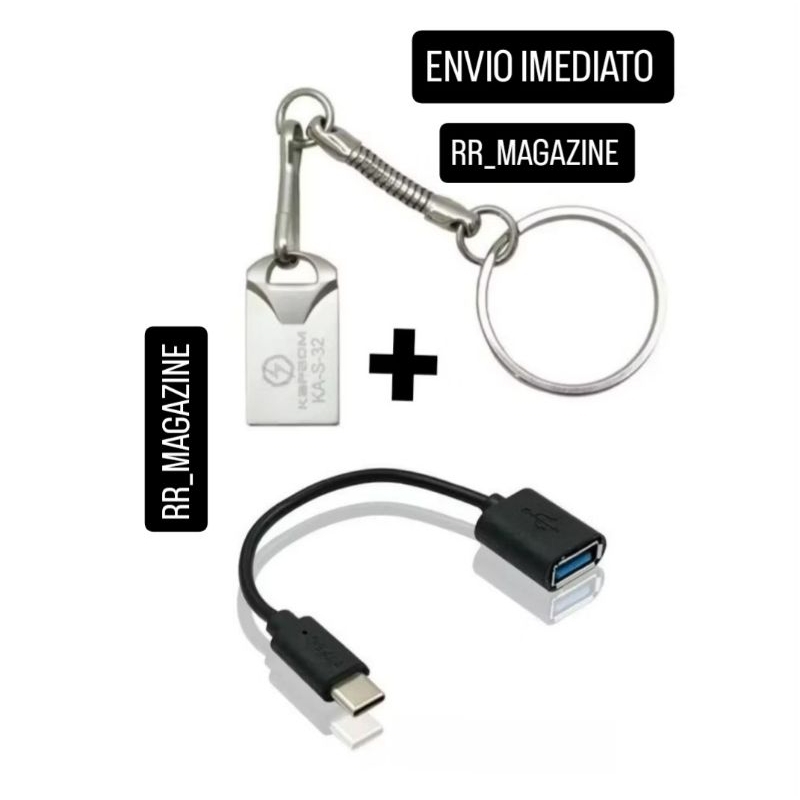 Kit Mini Pen drive 16Gb metalico pendrive + Cabo Otg tipo C transferencia para smartphones