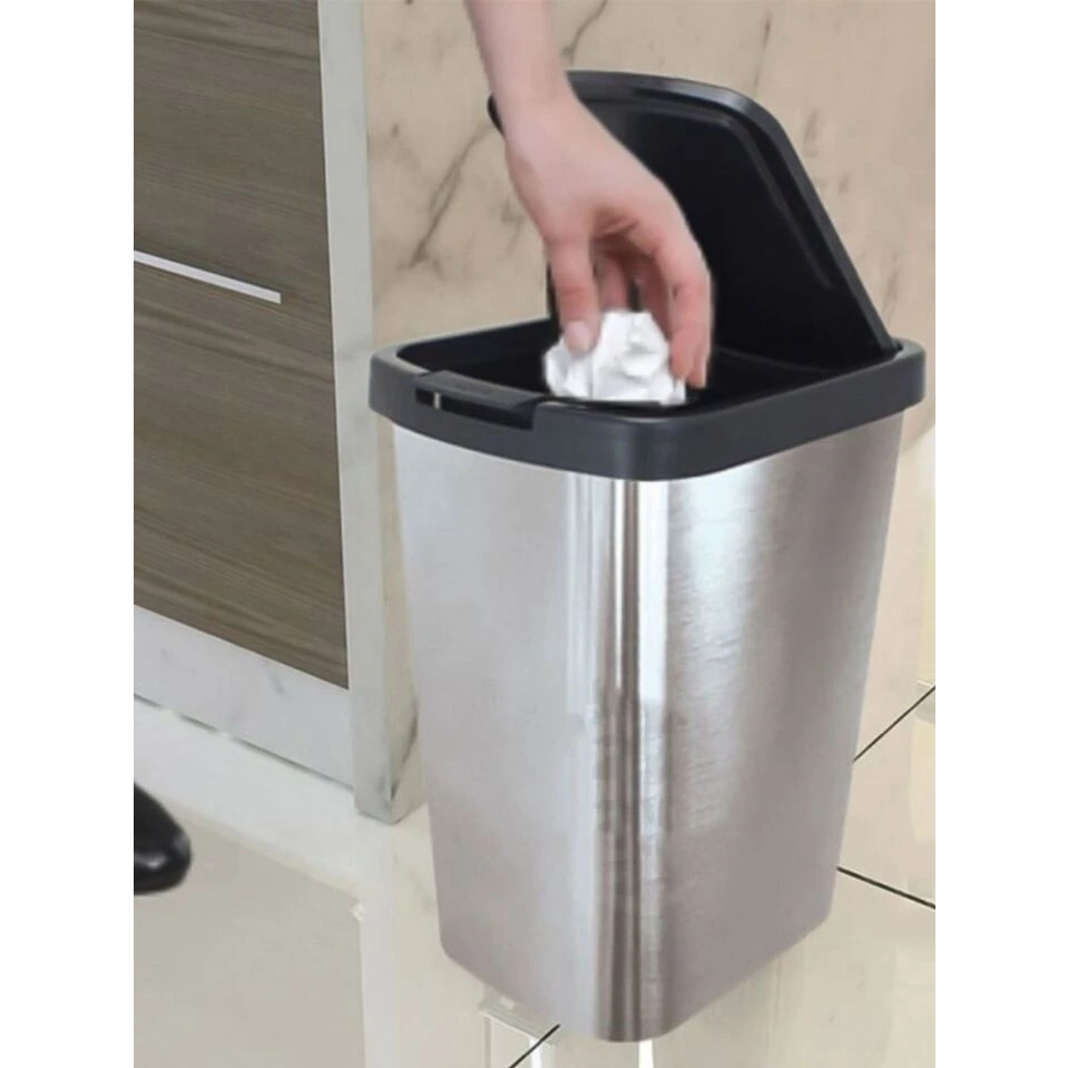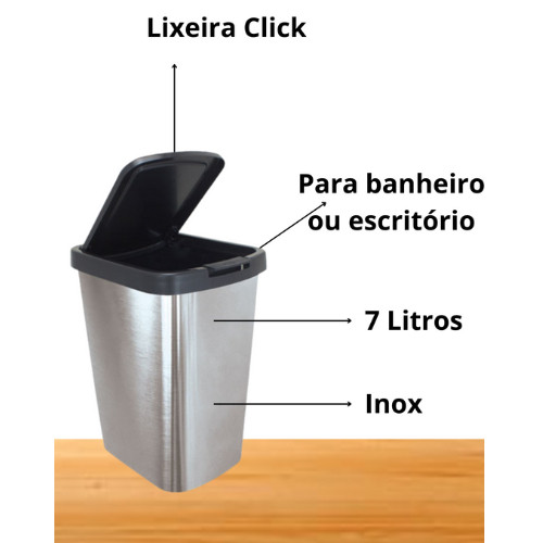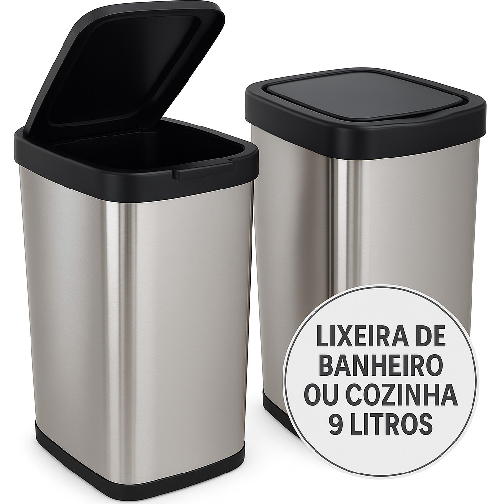 Kit Até 2 Lixeiras Cesto 09 Litros Inox Com Tampa Click Label Lixeira Escritório Lixeira Banheiro Chique