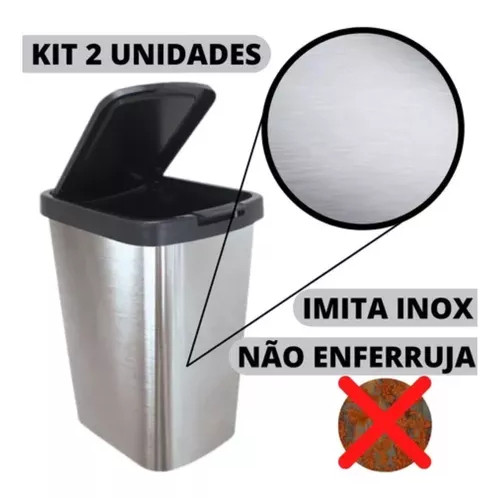 Kit Lixeiras Cesto 09 Litros Inox Com Tampa Click Label Lixeira Escritório Lixeira Banheiro Chique