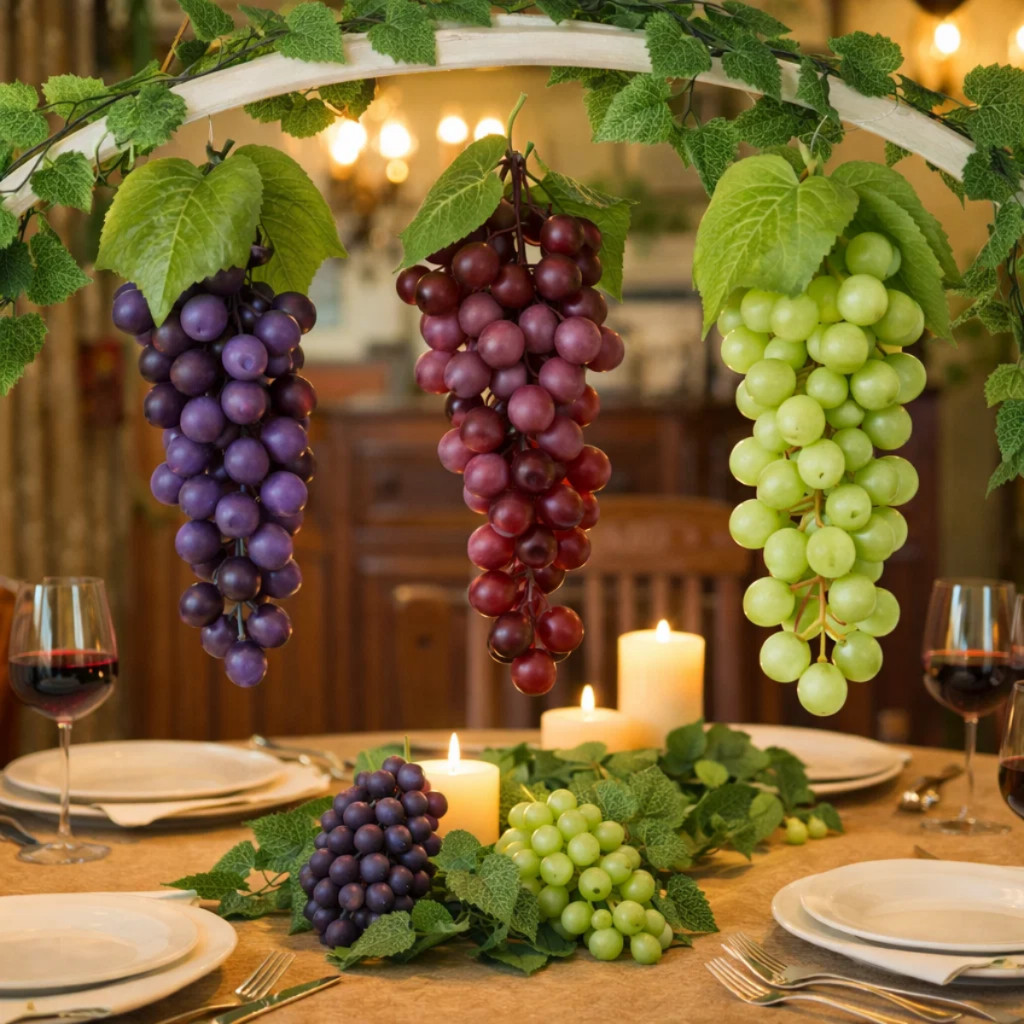 Kit De 01 Até 03 Uvas Artificiais Decorativas Realistas para Cozinha Fruteira Mesa Posta