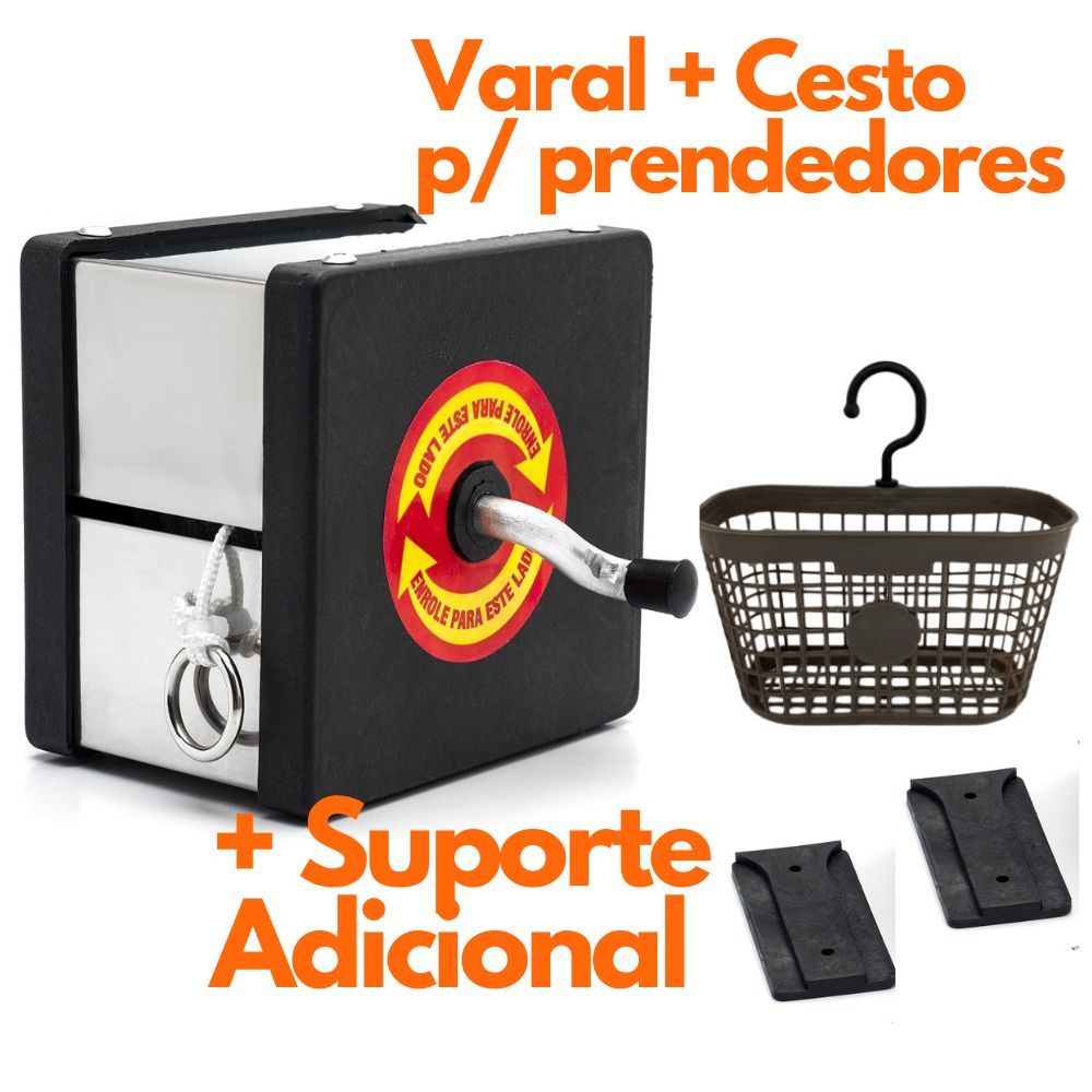 Varal de Parede Retratil Recolhivel Inox Portátil 30 Mts Suporta 60kg Corda Resistente a Sol Chuva