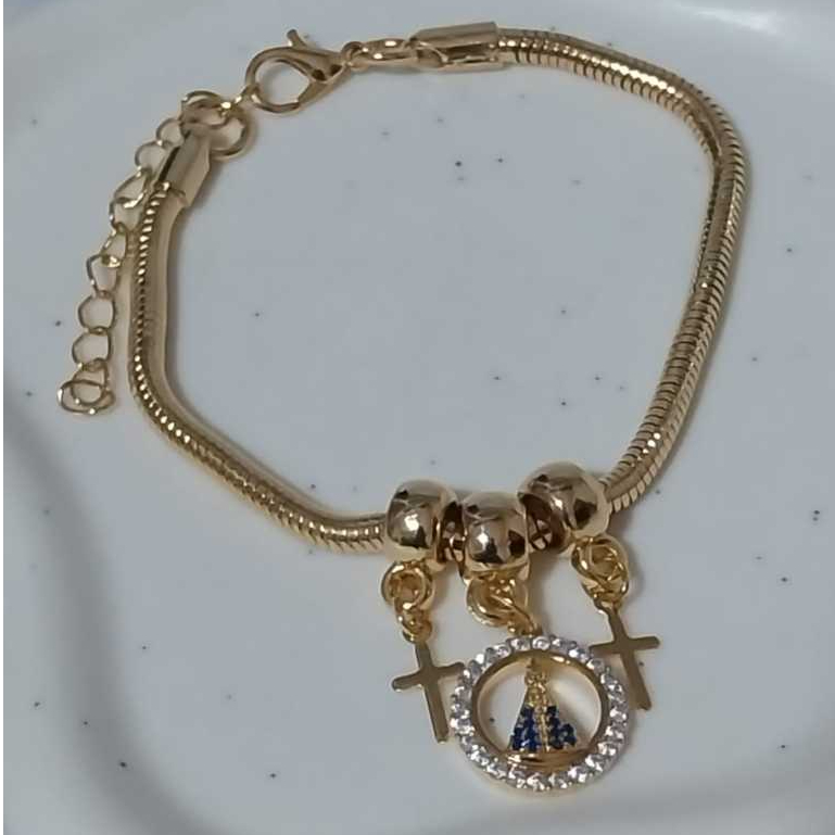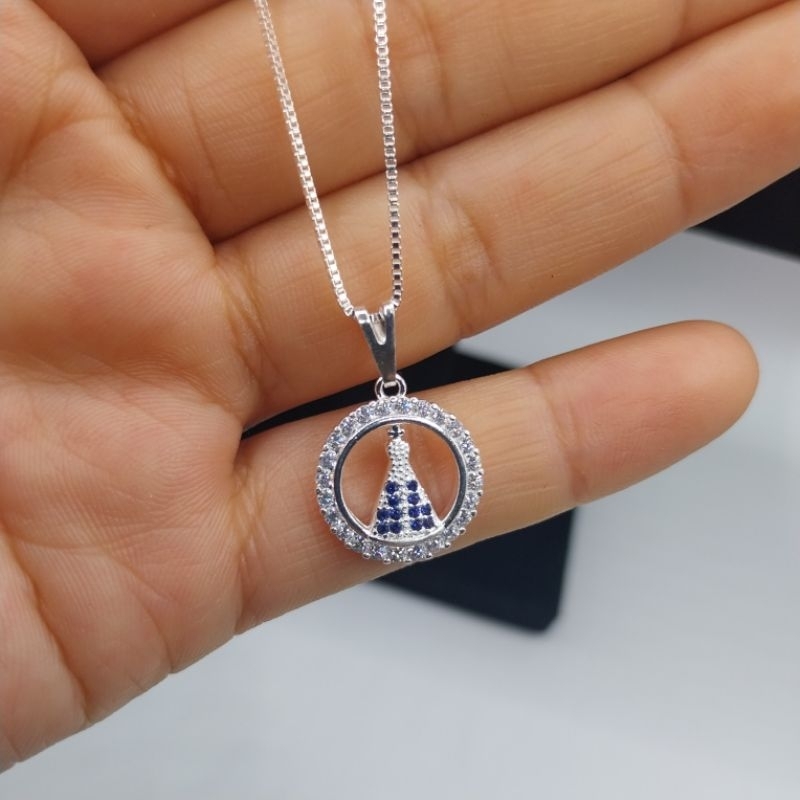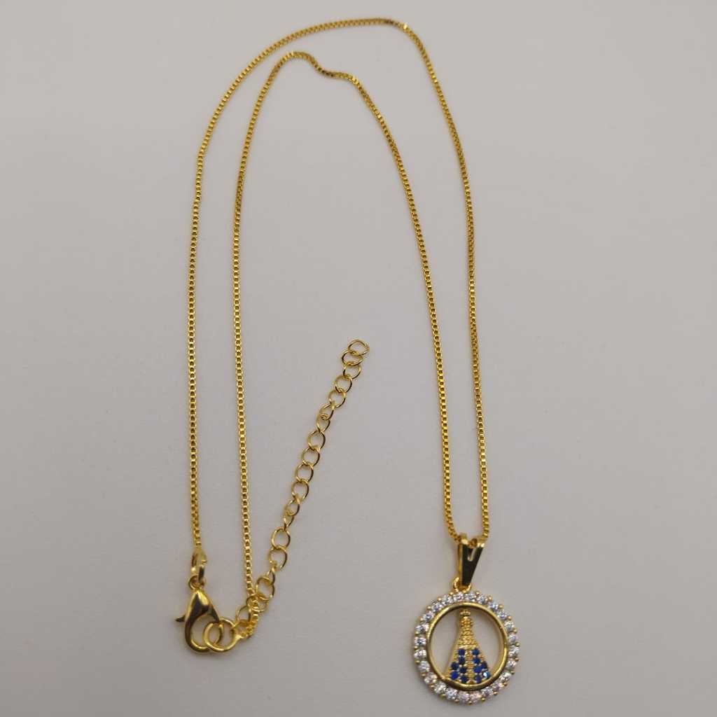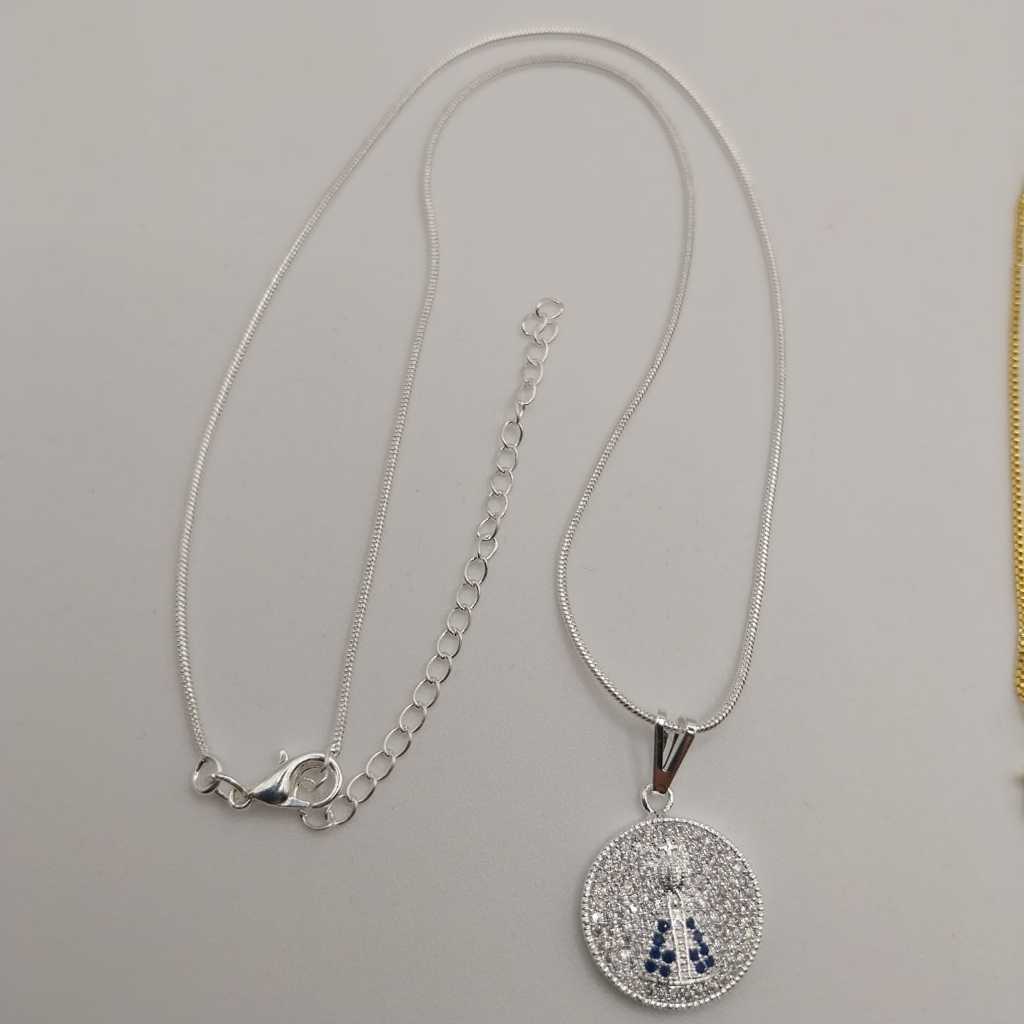 Colar Nossa Senhora Aparecida Com Strass Folheada A Prata 925 e Ouro 18k - Acessórios Femininos