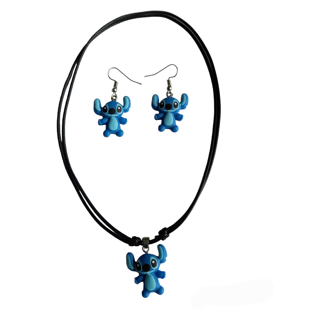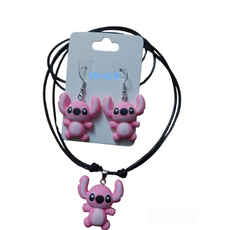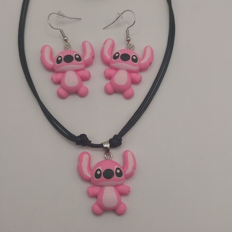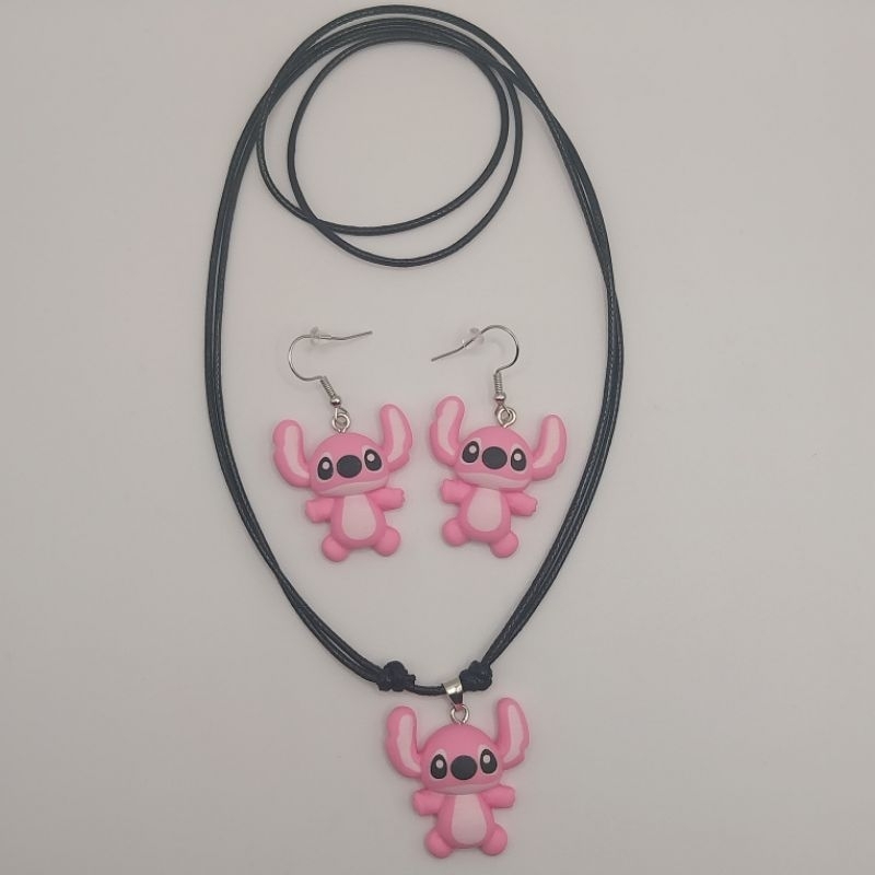 Conjunto Colar + Brinco Stitch e Angel Anime
