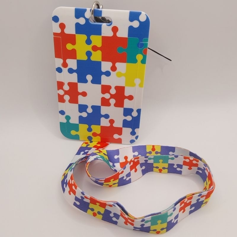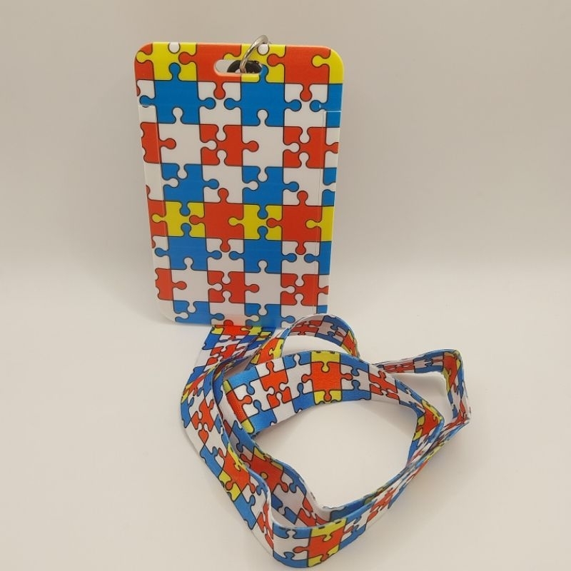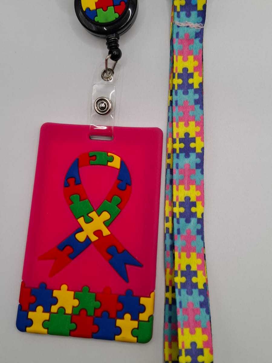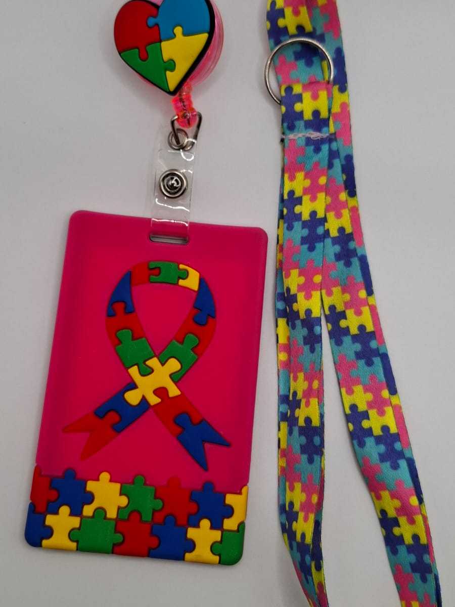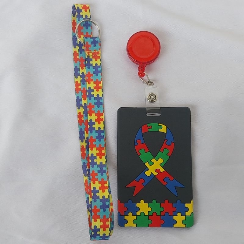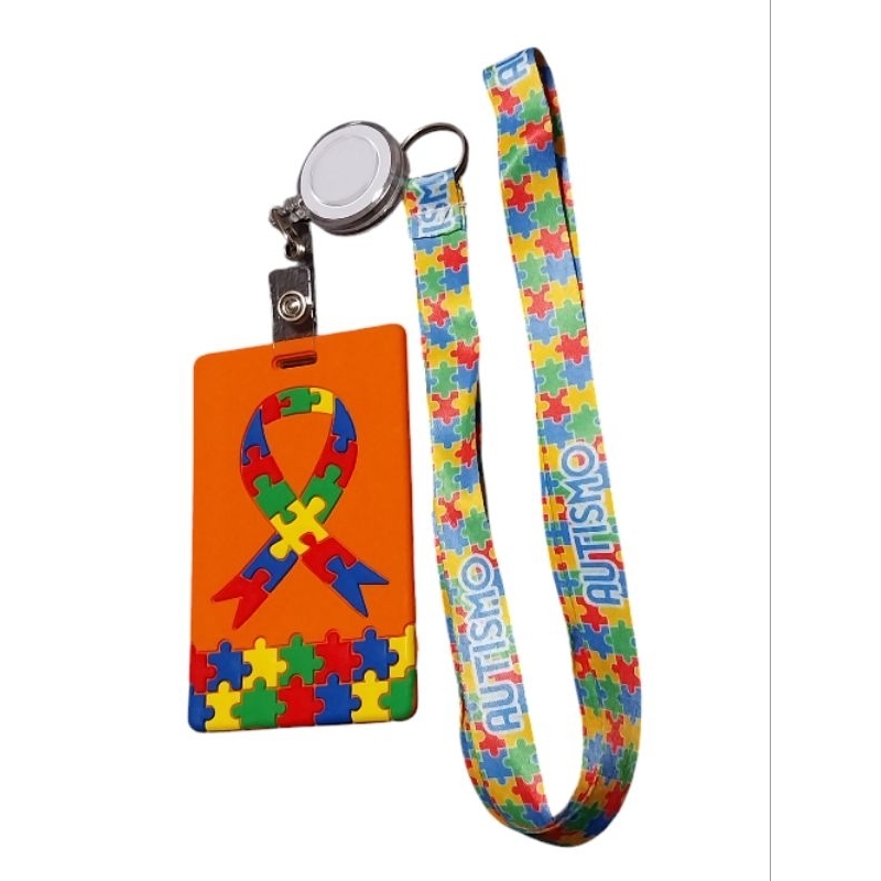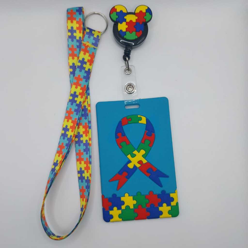 Kits Cordão Autismo Emborrachado + Porta Crachá Retrátil TEA