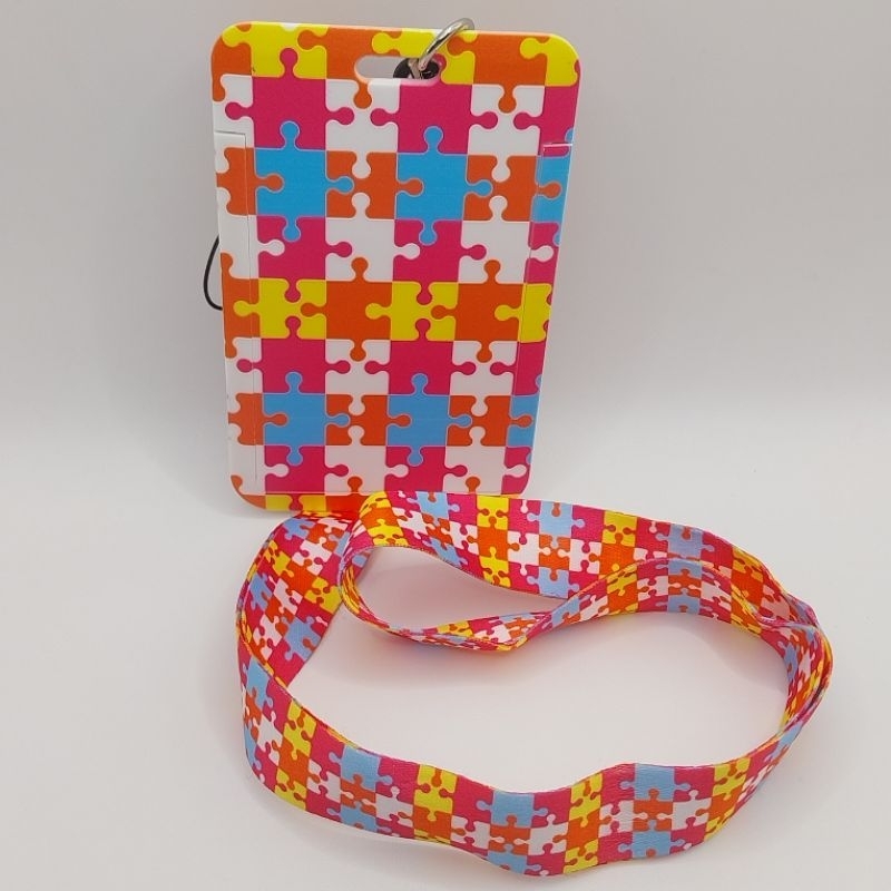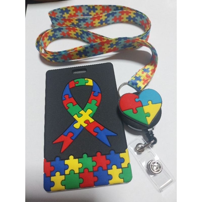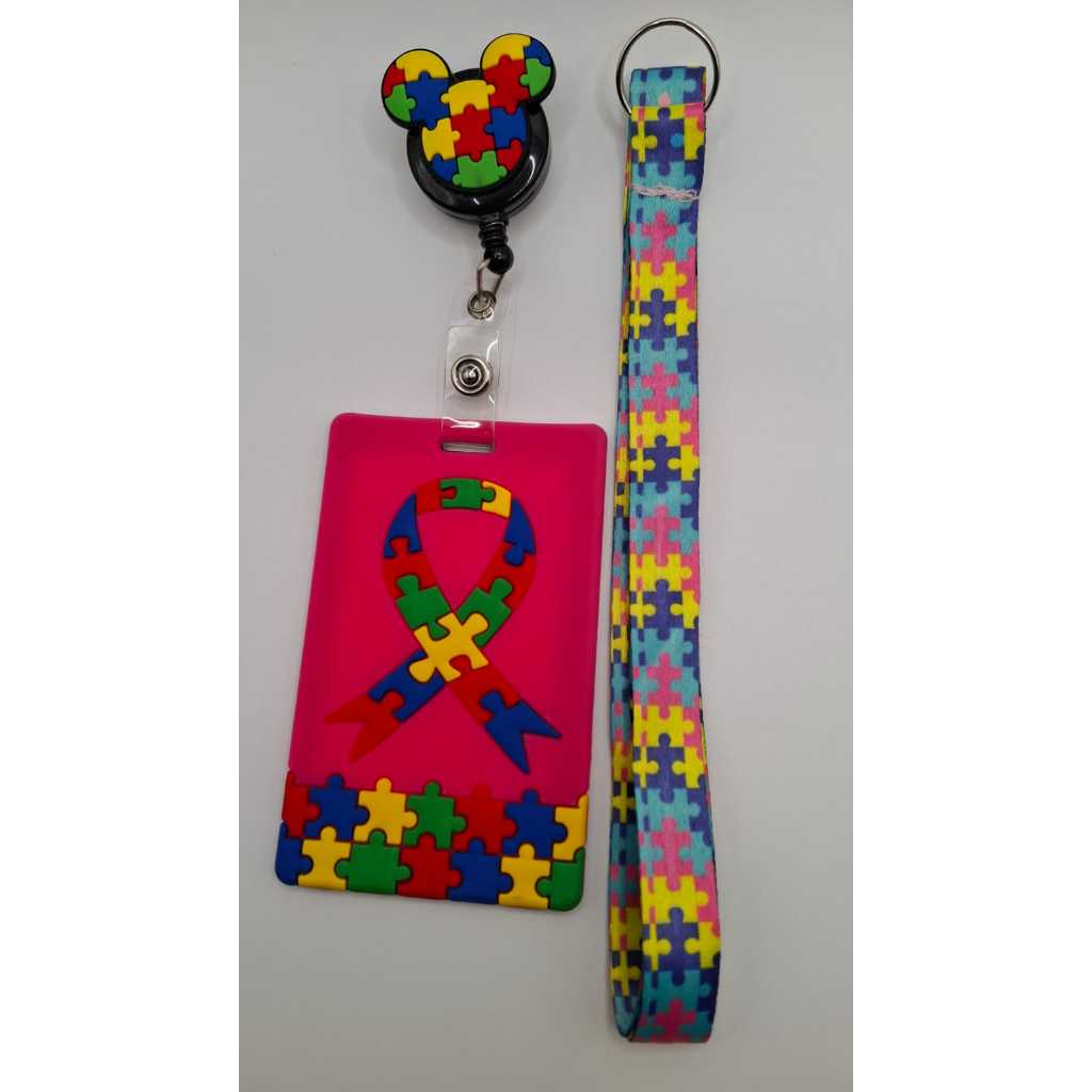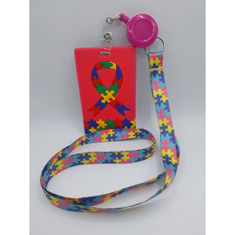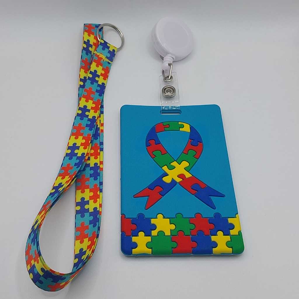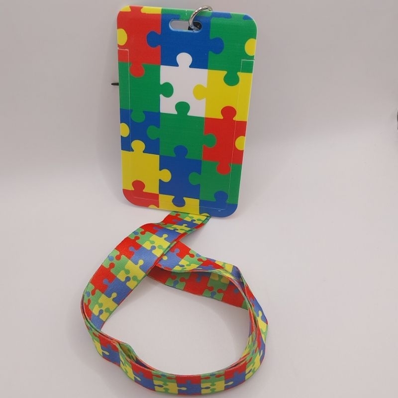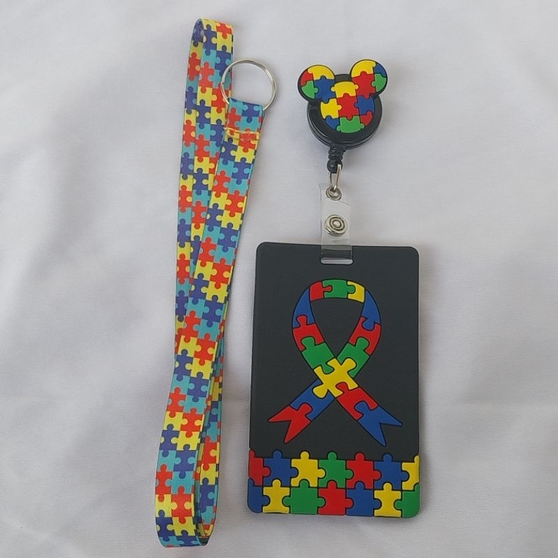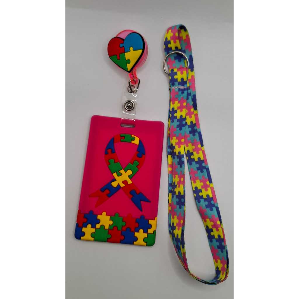 Kits Cordão Autismo Emborrachado + Porta Crachá Retrátil TEA