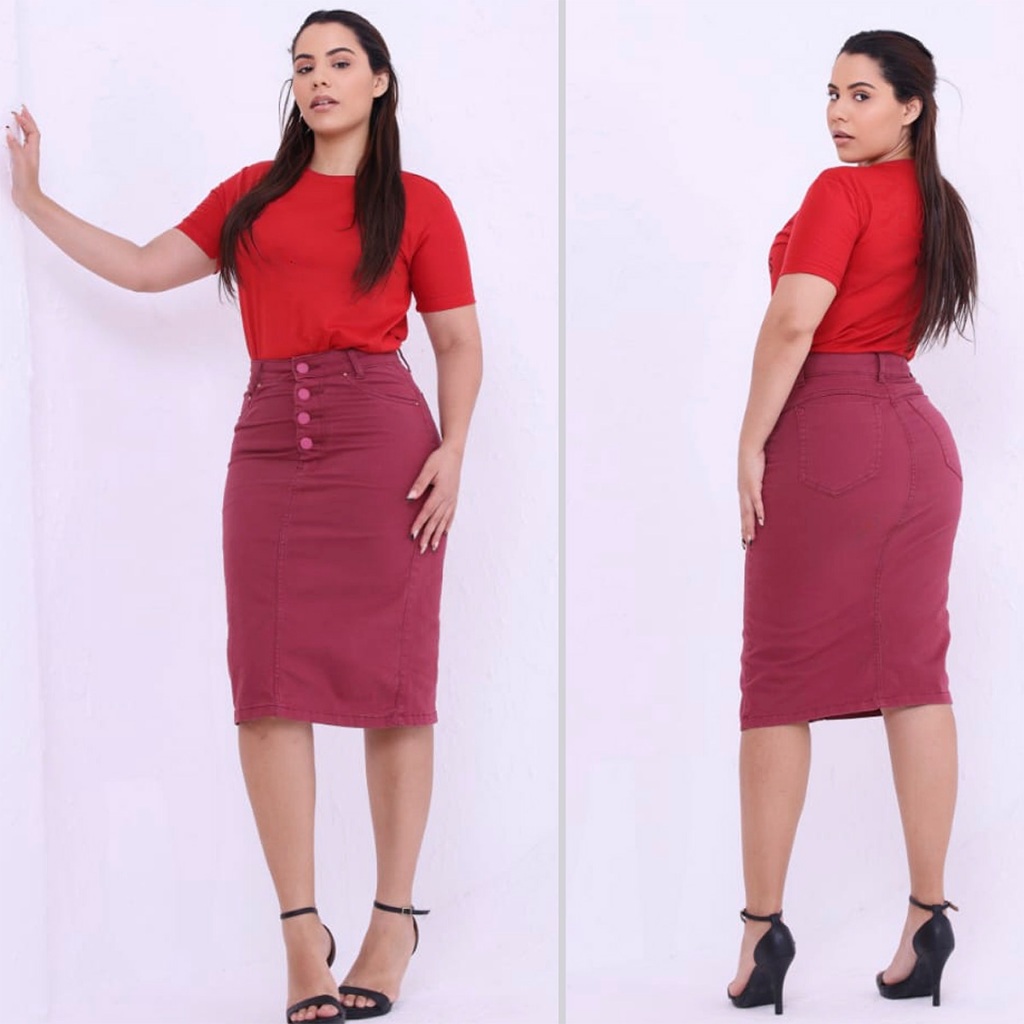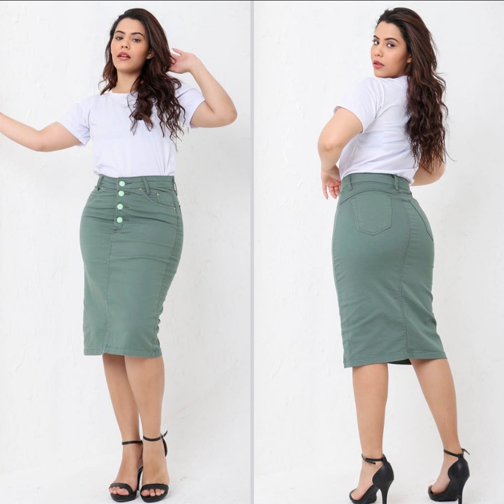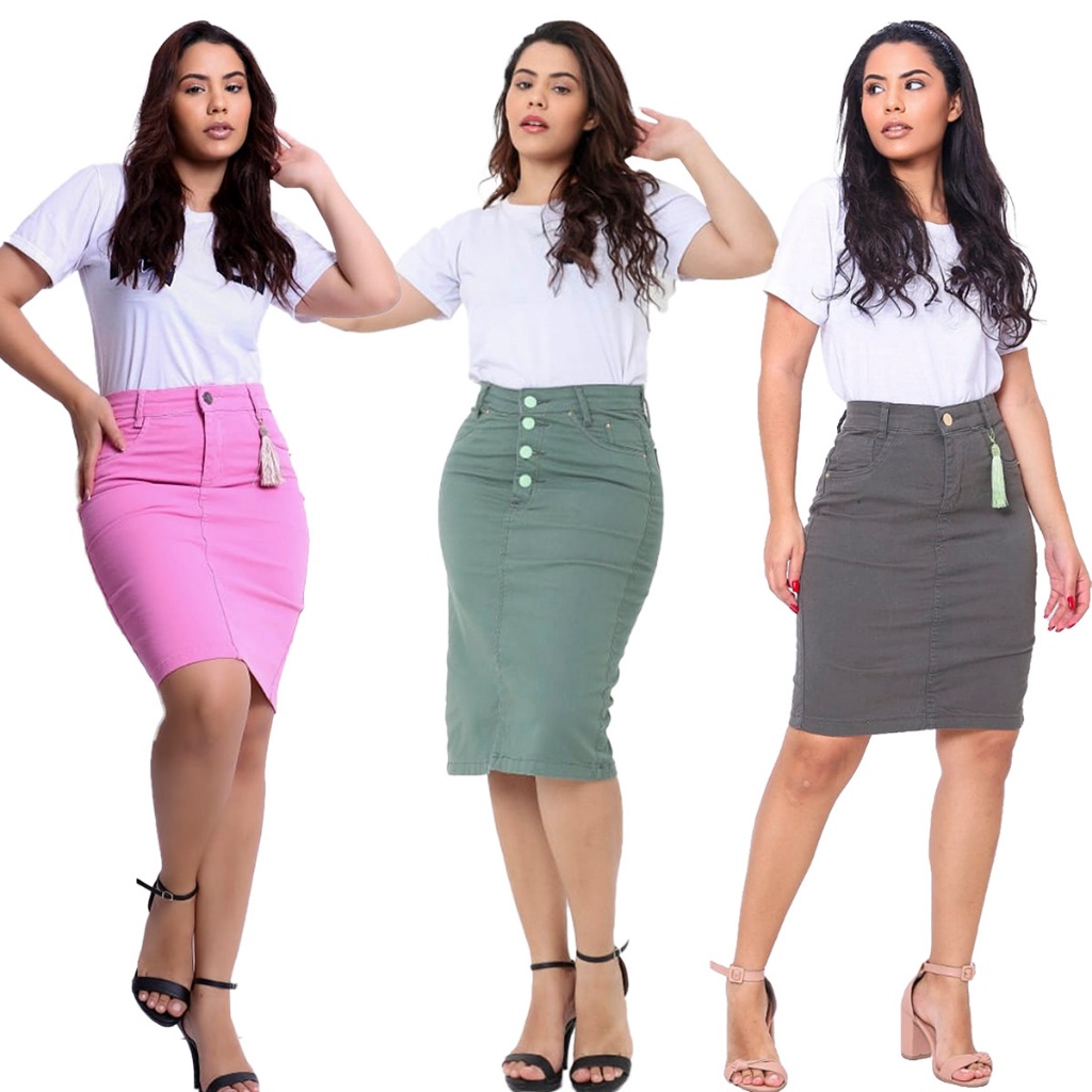 Saia Colorida Saia Secretária Com Lycra Moda Evangélica