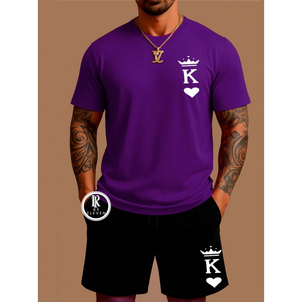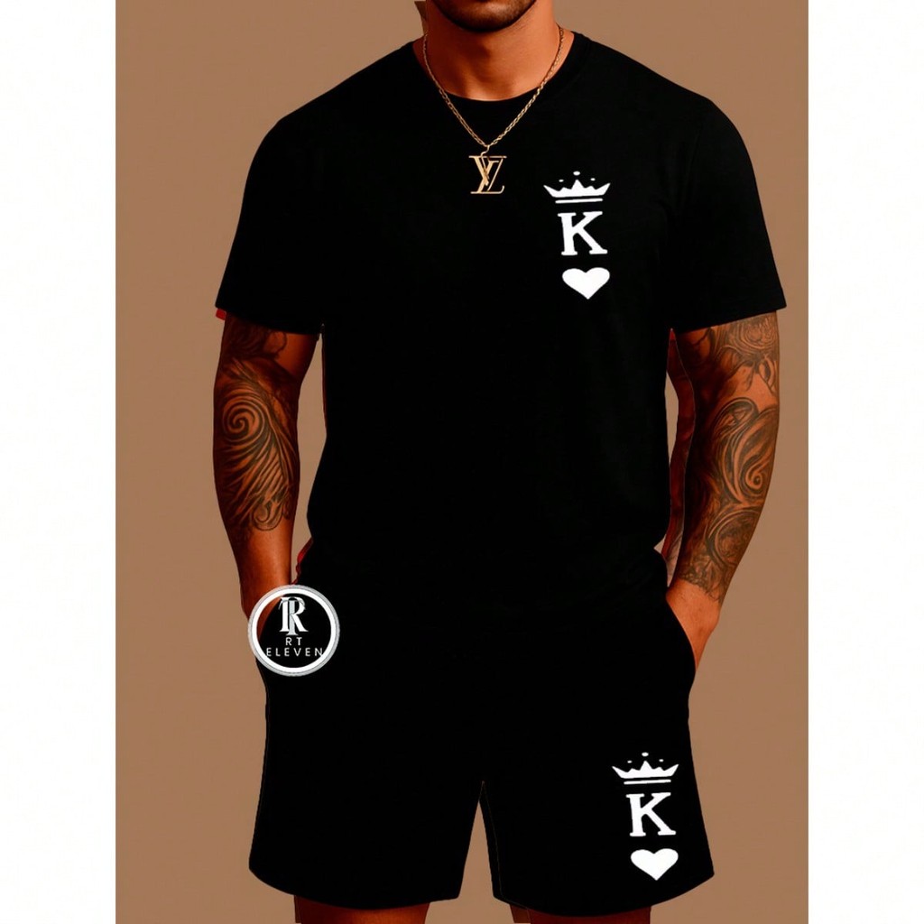 Conjunto Masculino K King Camiseta Streetwear Masculina + Bermuda Moletom Estampada Kit Camiseta + Short Moletom